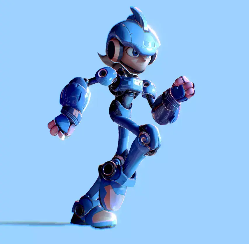 - Estilo futurista/cartoon sci-fi inspirado en héroes robóticos clásicos.