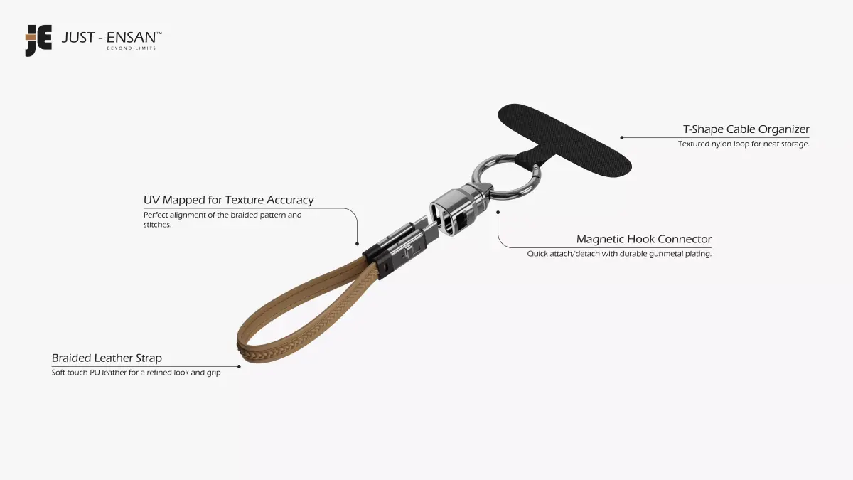 A premium 3D asset representing a high-end Type-C charging lanyard. Designed with attention to realistic materials and manufacturing accuracy, this model features clean topology, PBR materials, and detailed connectors suitable for close-up rendering. The braided strap texture and metallic components make it ideal for advertising visuals, tech product design, and digital presentations.