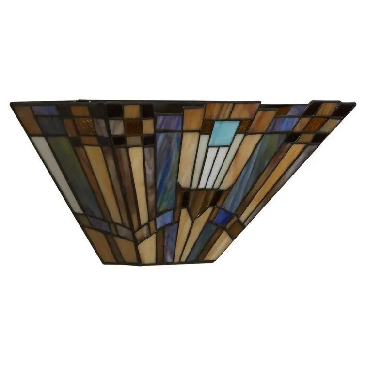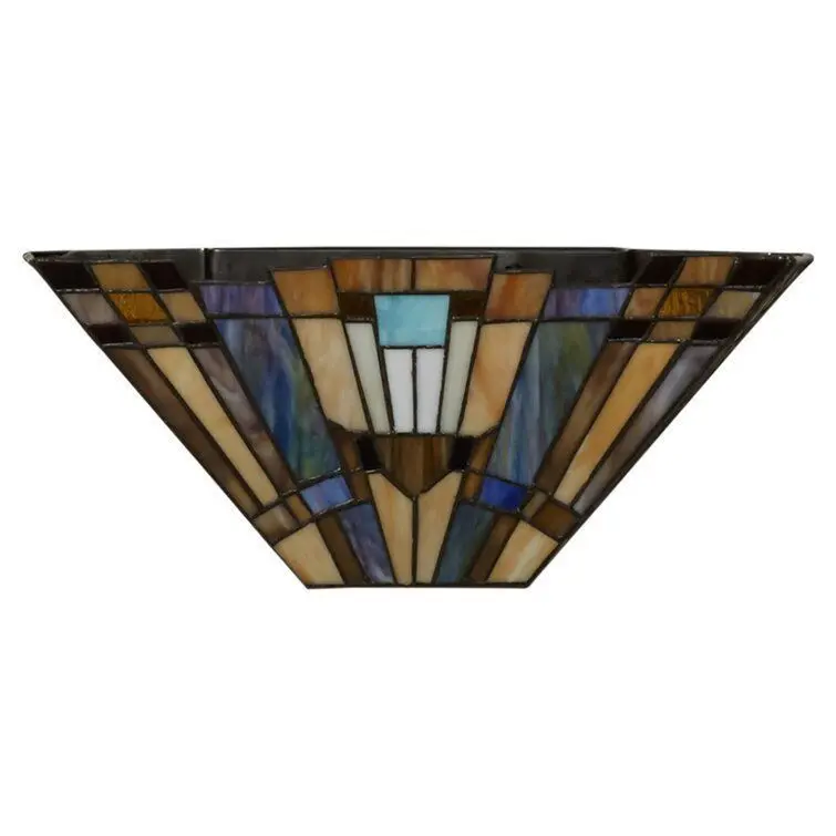 - Art glass features hues of sapphire blue, warm hone, amber and cream