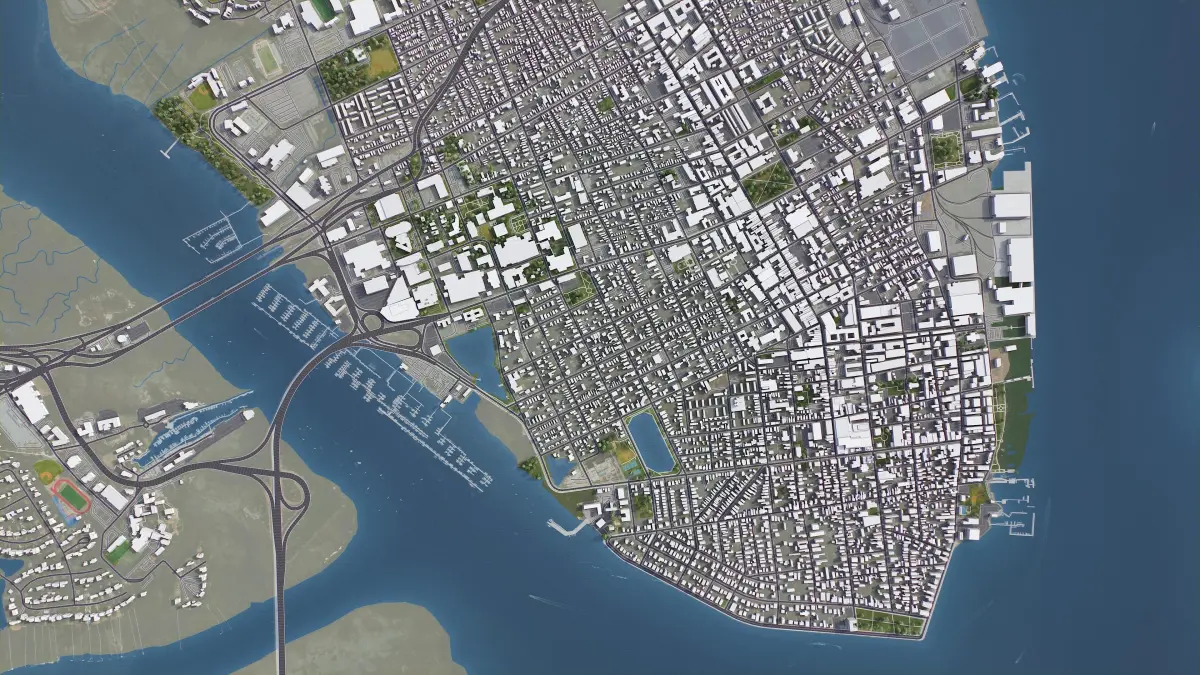 - Full city extents up to 100 x 100 km — or crop to an area of interest for better format compability and scene performance