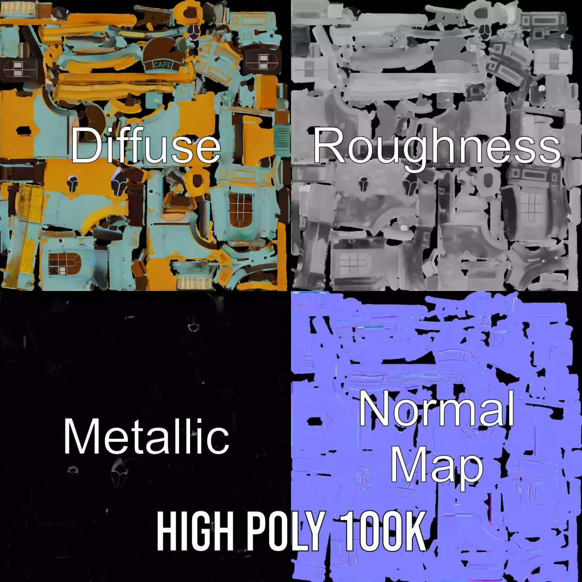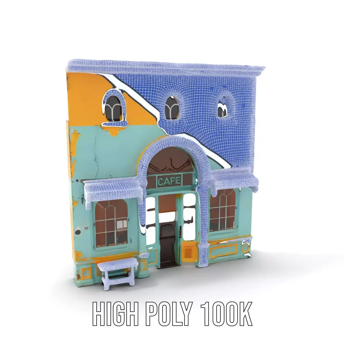 This 3D model pack features a charming boutique cafe with a distinctive vintage style, perfect for adding character and charm to urban or small-town environments. The model showcases vibrant pastel colors, a unique architectural design, and detailed textures, making it ideal for use in architectural visualization, game development, and virtual reality experiences. Each model has 3 levels of detail: low-poly (1000 triangles for mobile), middle-poly (10,000 triangles for environment), and high-poly (100,000 triangles), which allows for the use of this model in production rendering (such as 3ds max, Maya, Cinema4d, Blender, Vray/Corona/Cycles and all others), game engines (Unity and Unreal compatible), and interactive presentations, providing a choice of detail based on the LOD System principle. The model's textures are PBR, Diffuse, NormalMap, and reflection/roughness/metallic, which are suitable for any modern rendering engine. All models accurately unwrapped with no overlapping UVs. Textures are 4096*4096 in size. If you liked this model, please like and leave a comment!