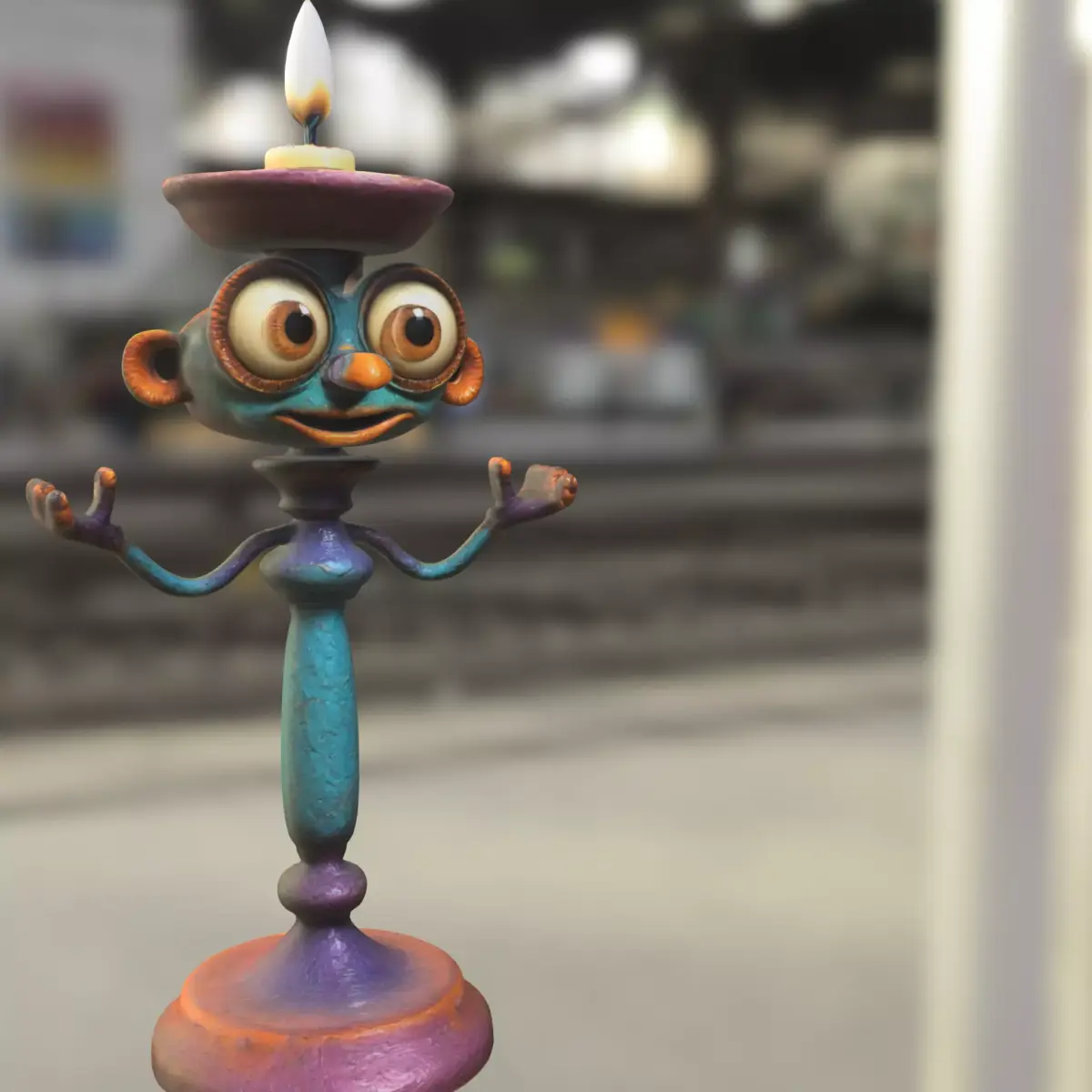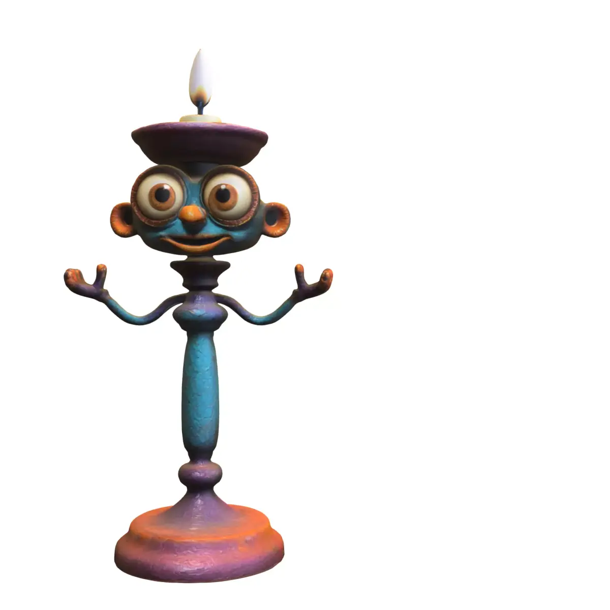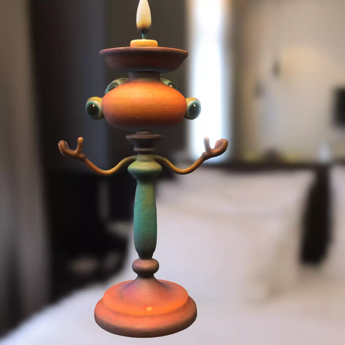 This delightful 3D model showcases a quirky candle butler character with a cheerful face, oversized eyes, and expressive arms. Designed in a stylized, hand-painted aesthetic, it fits perfectly in whimsical and fantasy game settings. Ideal for games like Disney Dreamlight Valley, Roblox, VRChat, or The Sims as a background NPC, decorative item, or interactive character.