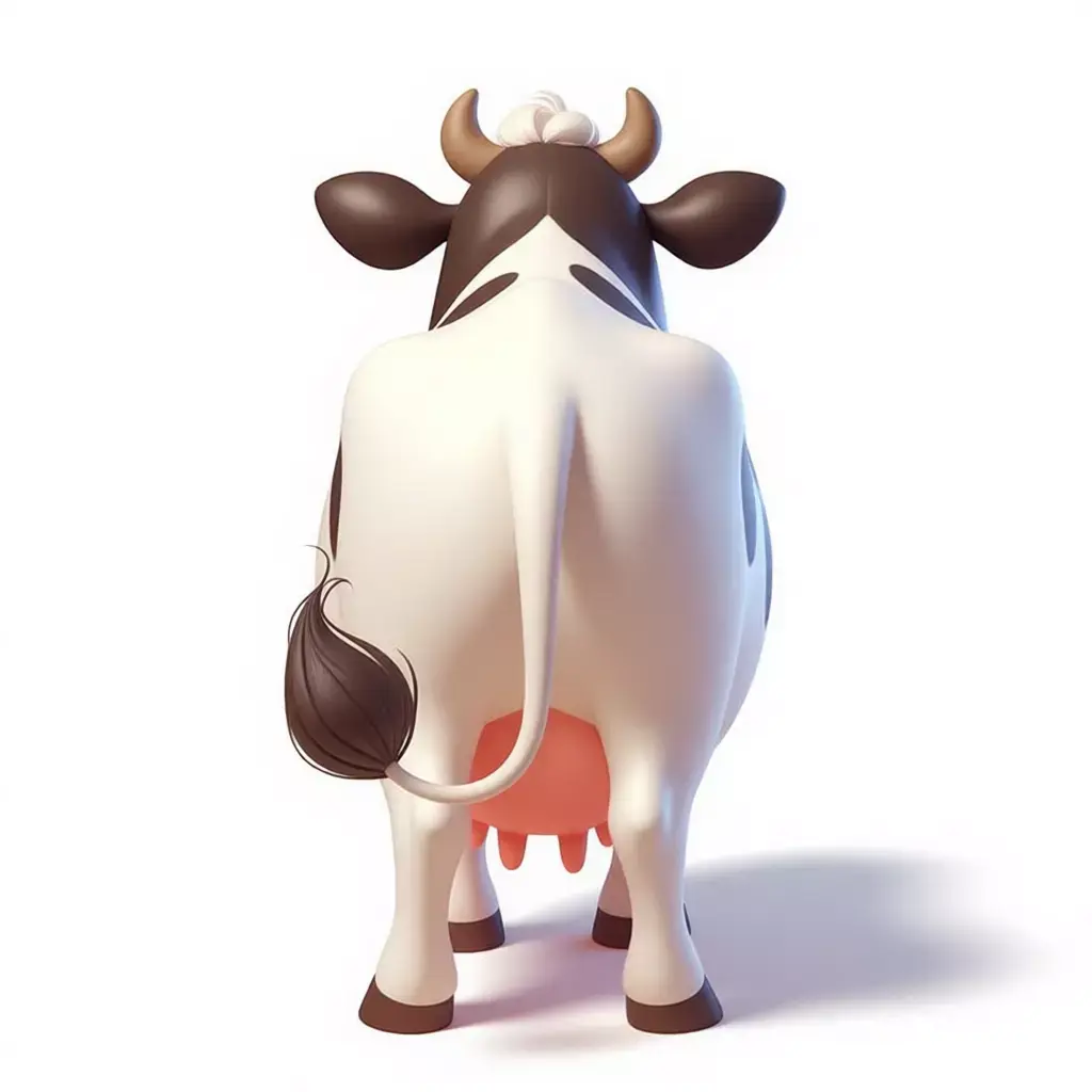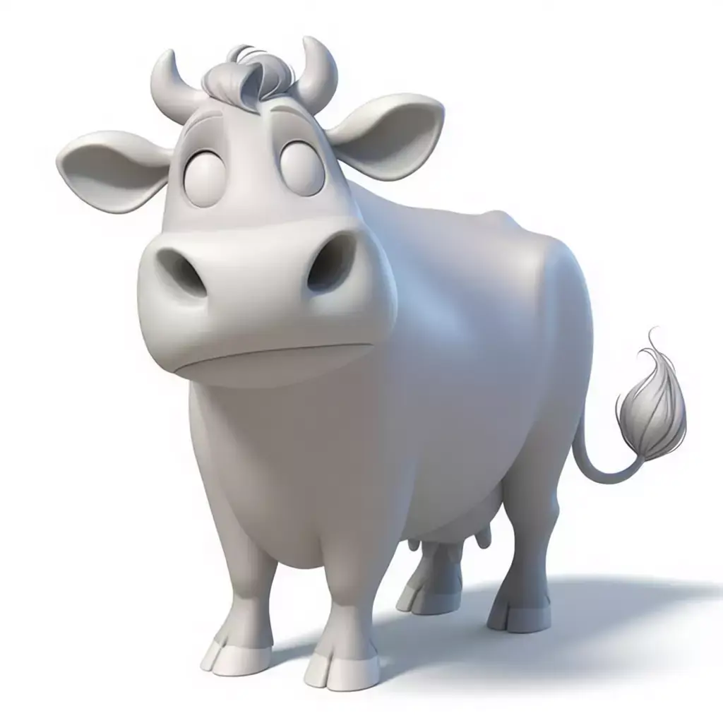 Environmentally, the neutral background allows effortless integration into any scene: sun-drenched pastures, barnyards, animated farms, school classrooms, grocery store ads, or even surreal fantasy landscapes. Lighting can be adjusted to simulate golden hour glow, indoor studio lighting, or magical twilight—all enhancing the character’s inherent warmth and approachability. For creators, educators, studios, or NFT artists, this cow offers unmatched versatility: ideal for mascots (dairy brands, eco-friendly products), storybook illustrations, interactive learning modules about farm life, toy product visualizations, or social media content where charm drives engagement.