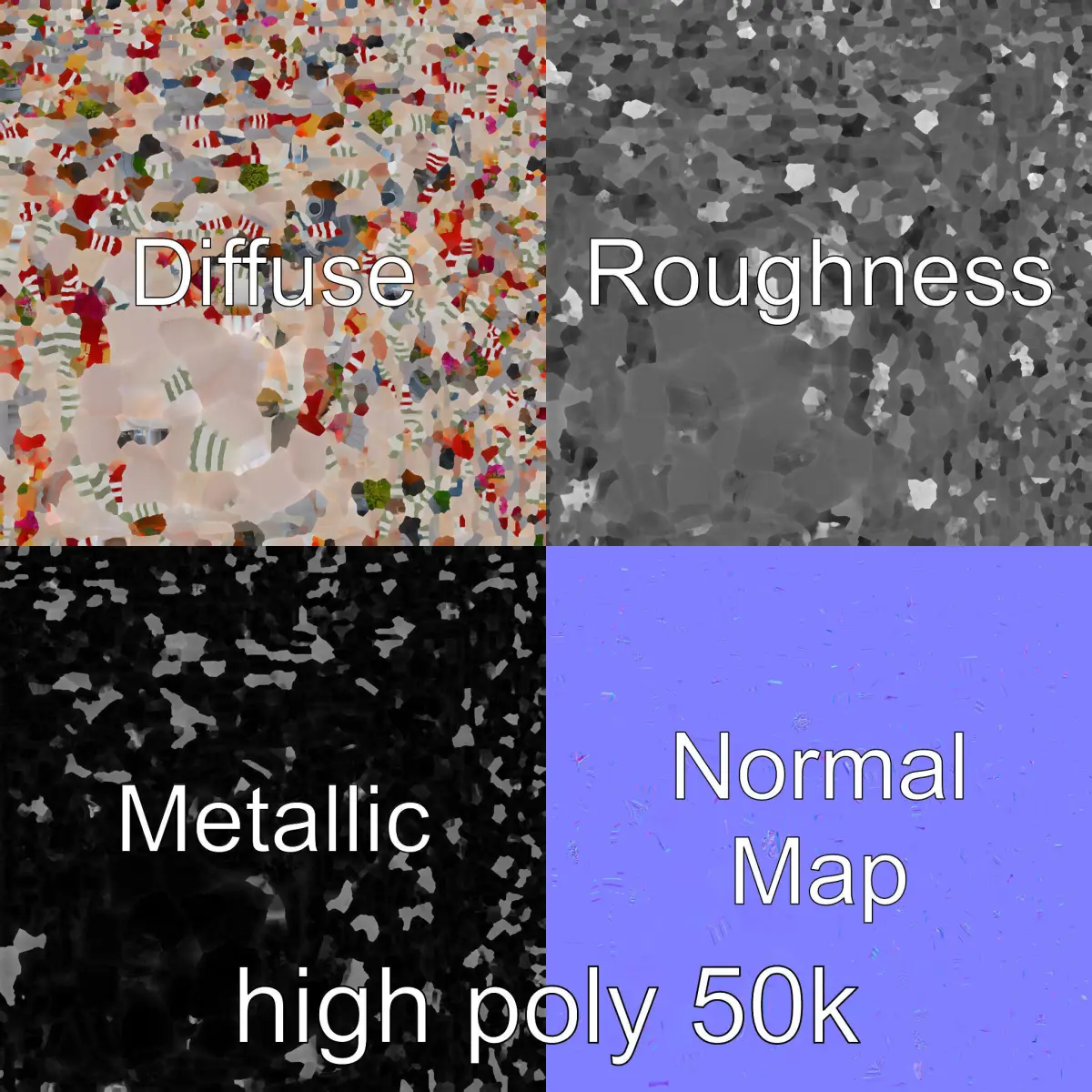 The model's textures are PBR, Diffuse, NormalMap, and reflection/roughness/metallic, which are suitable for any modern rendering engine. All models are accurately unwrapped and have no overlapping UVs. All textures are 4096*4096 in size.