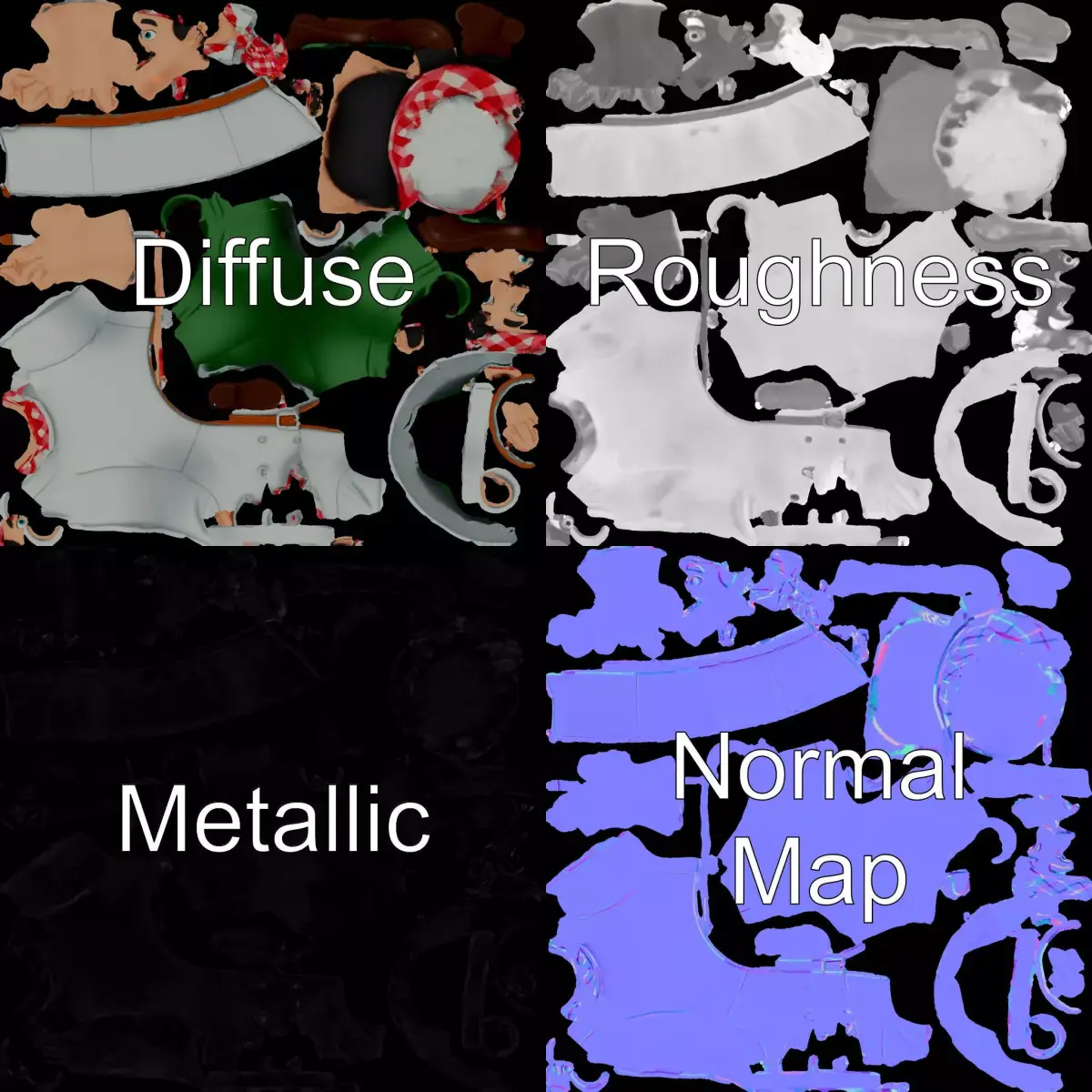 The model's textures are PBR, Diffuse, NormalMap, and reflection/roughness/metallic, which are suitable for any modern rendering engine. All models accurately unwrapped and have no overlapping UV. All textures are 4096*4096 in size.