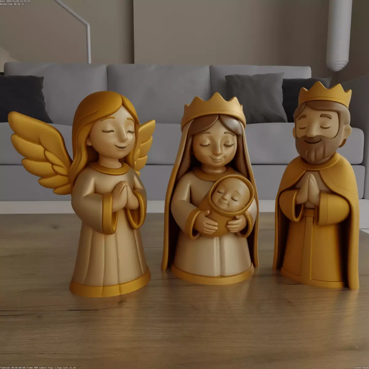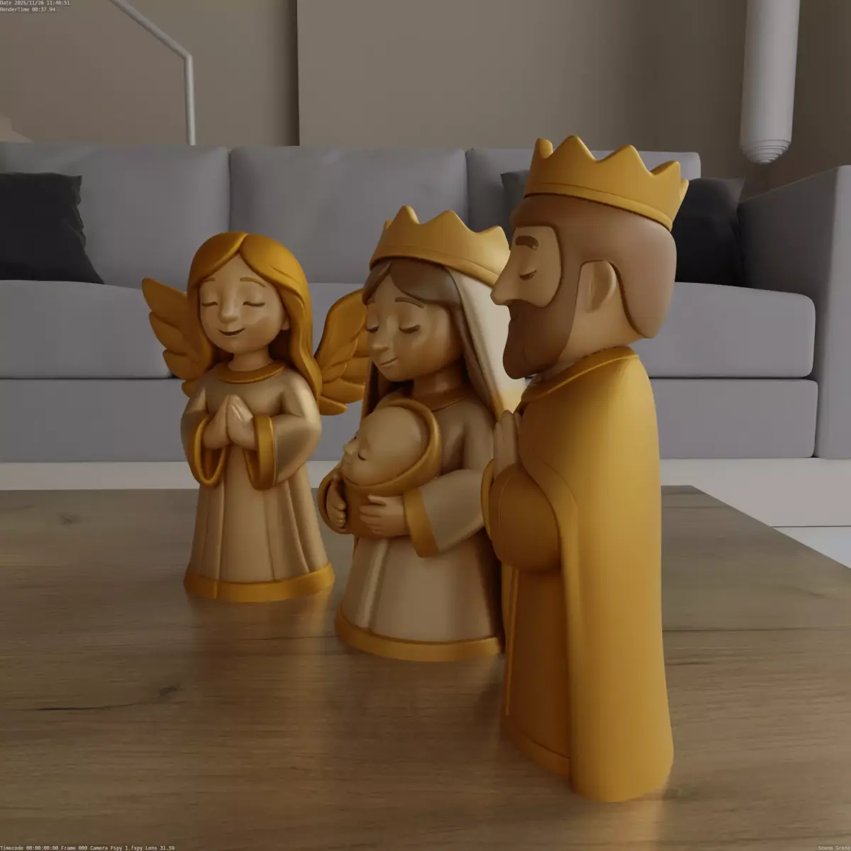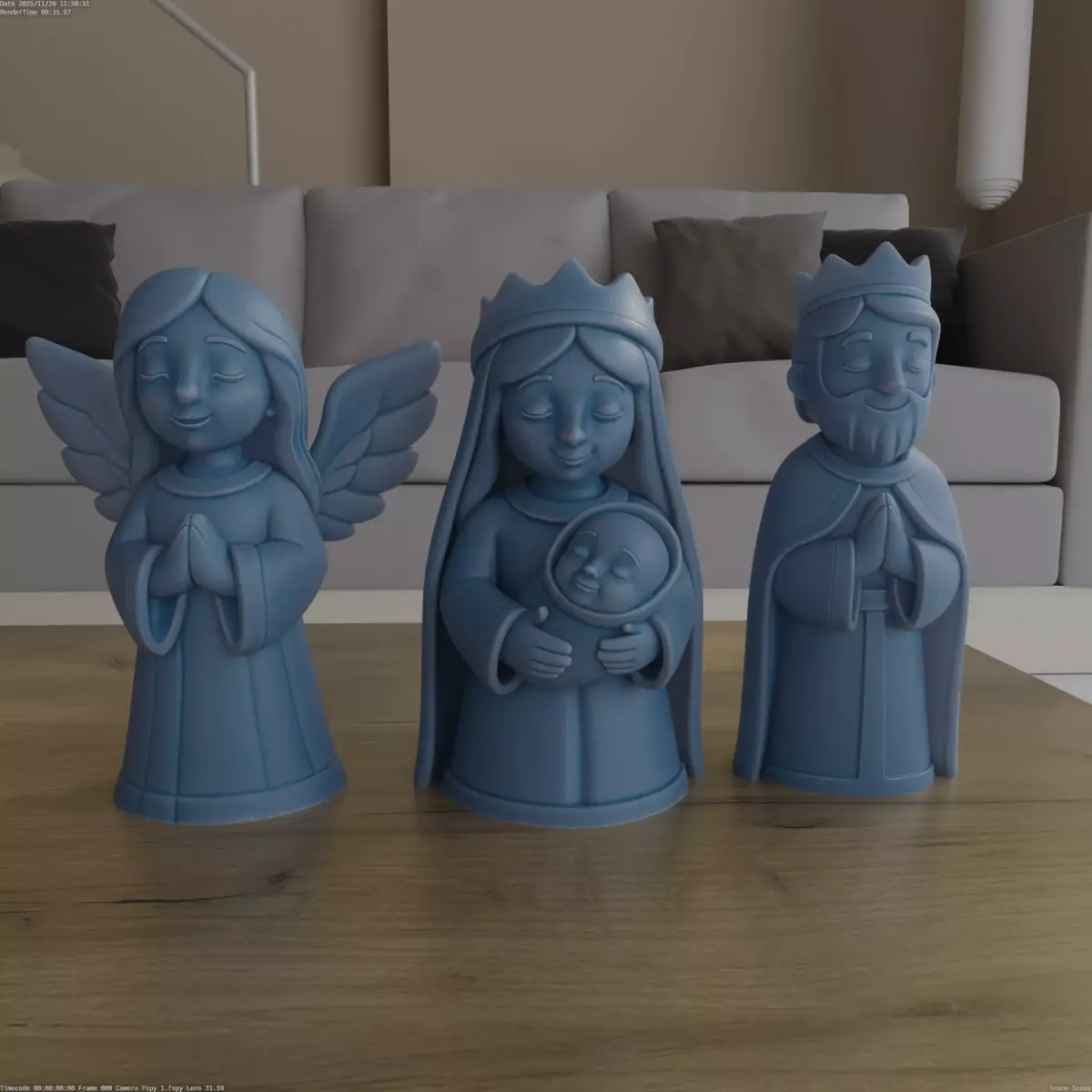 Design ConceptThe Charming Nativity Scene 3D model captures the essence of traditional nativity figures with a modern, stylized touch, making it perfect for festive decoration.