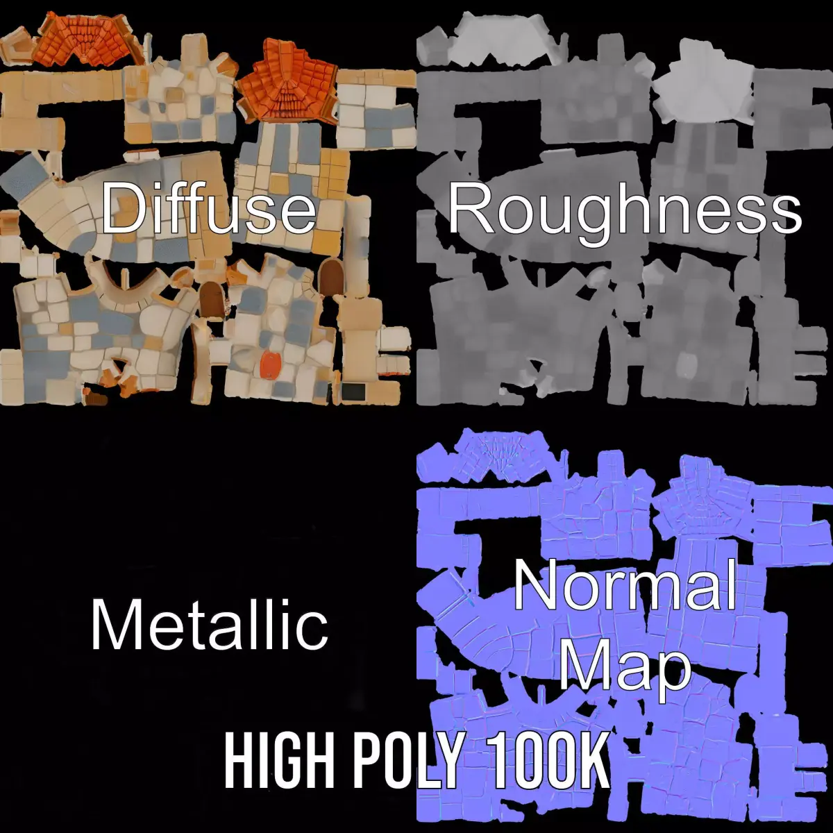 This Charming Stone Castle Wall model pack features a stylized medieval design with vibrant stone textures and a rustic wooden door. It's perfect for RPG games, historical reconstructions, and educational simulations. Each model has 3 levels of detail: low-poly(1000 triangles for mobile), middle-poly(10 000 triangles for environment), and high-poly(100 000 triangles), which allows for the use of this model in production rendering(such as 3ds Max, Maya, Cinema 4D, Blender, Vray/Corona/Cycles and all others), game engines (Unity and Unreal compatible), and interactive presentations, providing a choice of detail based on the LOD System principle. The model's textures are PBR, Diffuse, NormalMap, and reflection/roughness/metallic, which are suitable for any modern rendering engine. All models accurately unwrapped and have no overlapping UV. All textures are 4096*4096 in size. If you like this model, please give it a thumbs up and leave a comment!