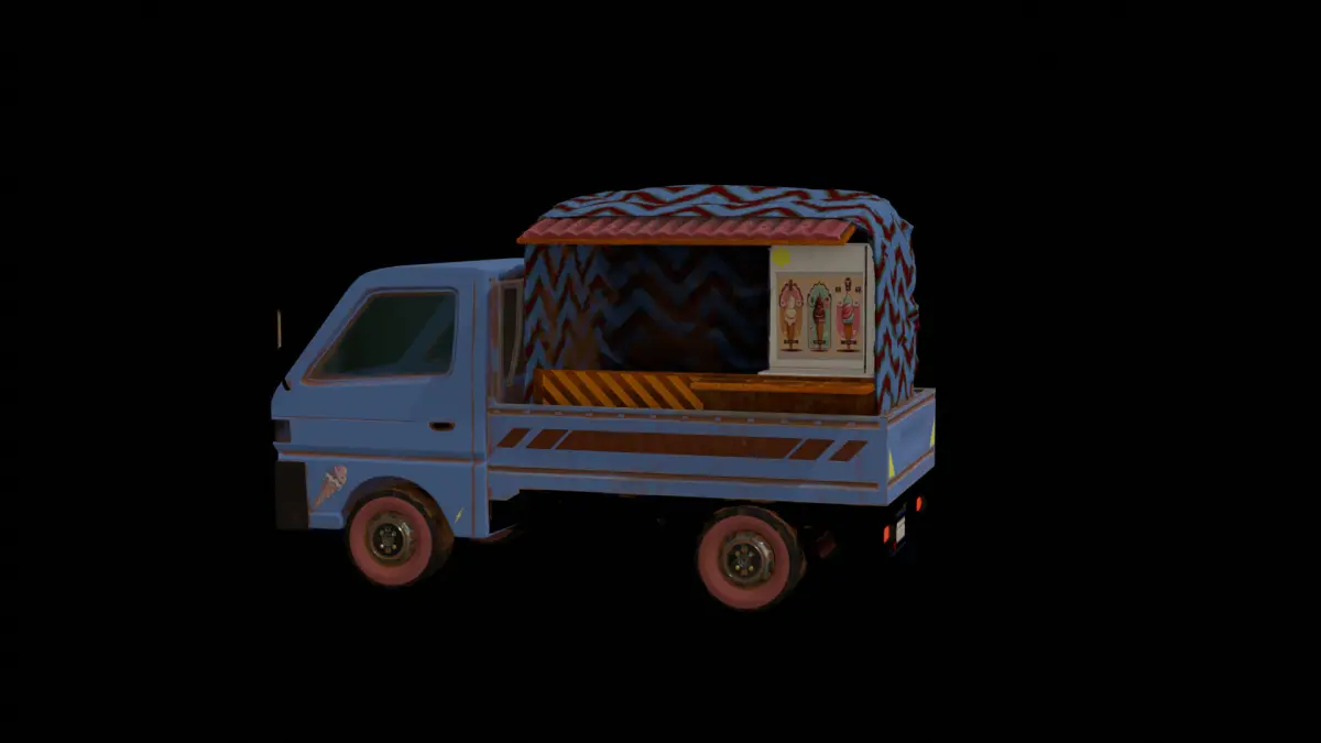 Vintage Store Truck 3D Model: Perfect for adding nostalgic charm to your store scenes. High-quality textures, detailed design
