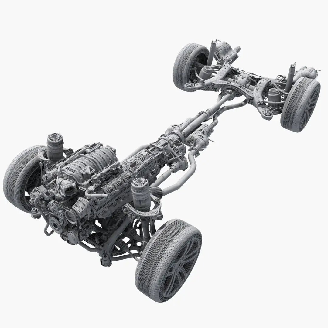 This page contains the "Chassis and engine" 3D model, which is a work by "qapqor".