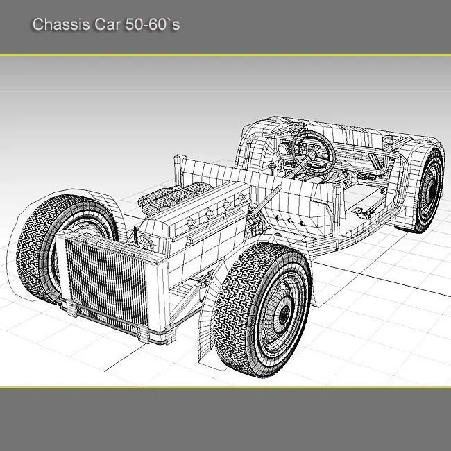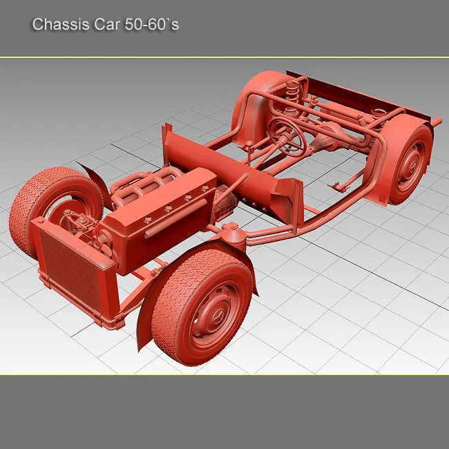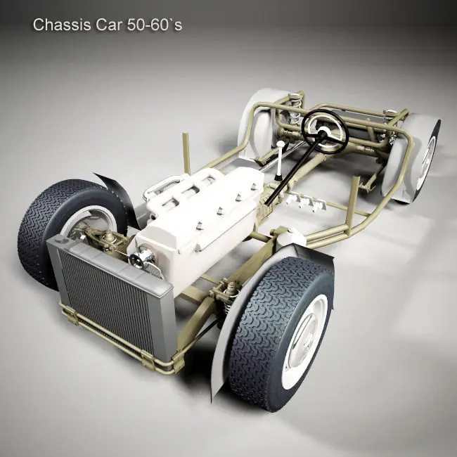 This 3d model of a old car chassis 50-60s. It is possible to use as a component of the car or separate elements.The model comes in four formats: