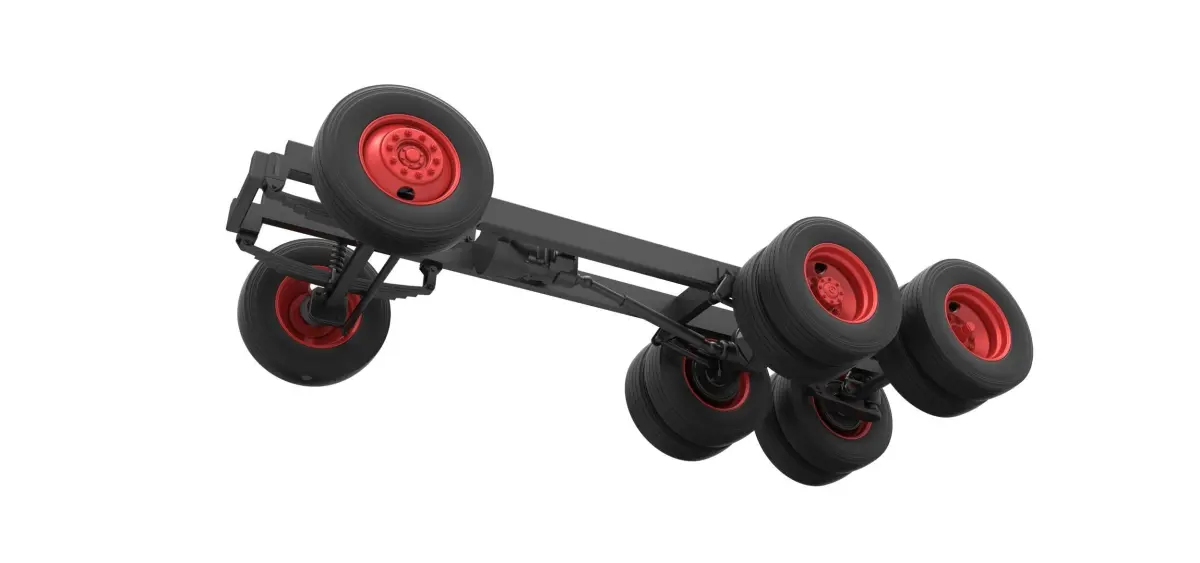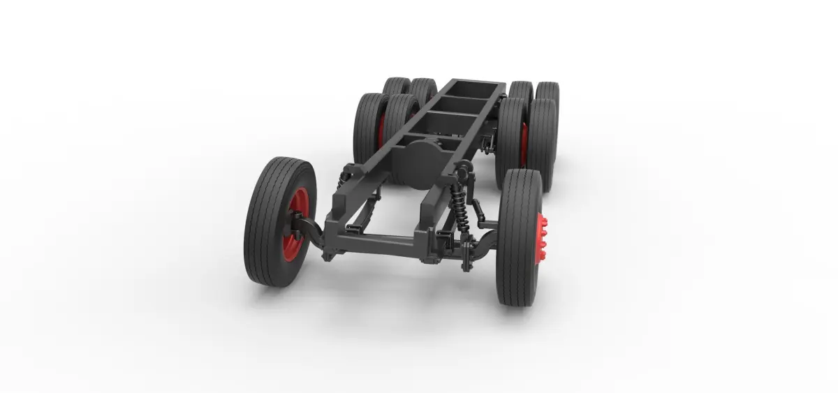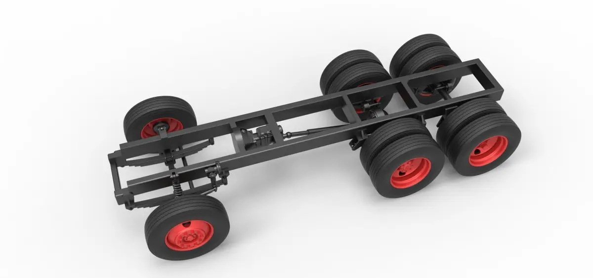 The model consists of parts: Body part 1,2, Front rims, Rear inner rims, Rear outer rims 1, Rear outer rim, 2, Tires.