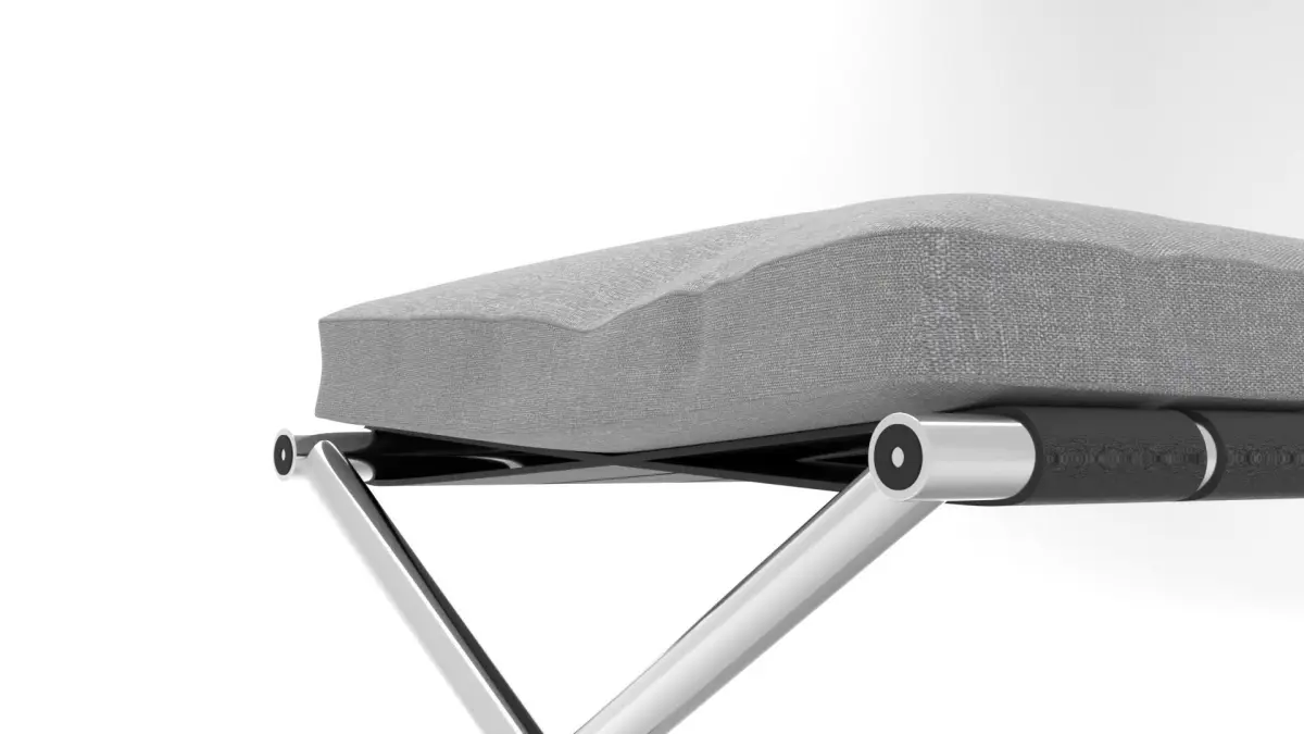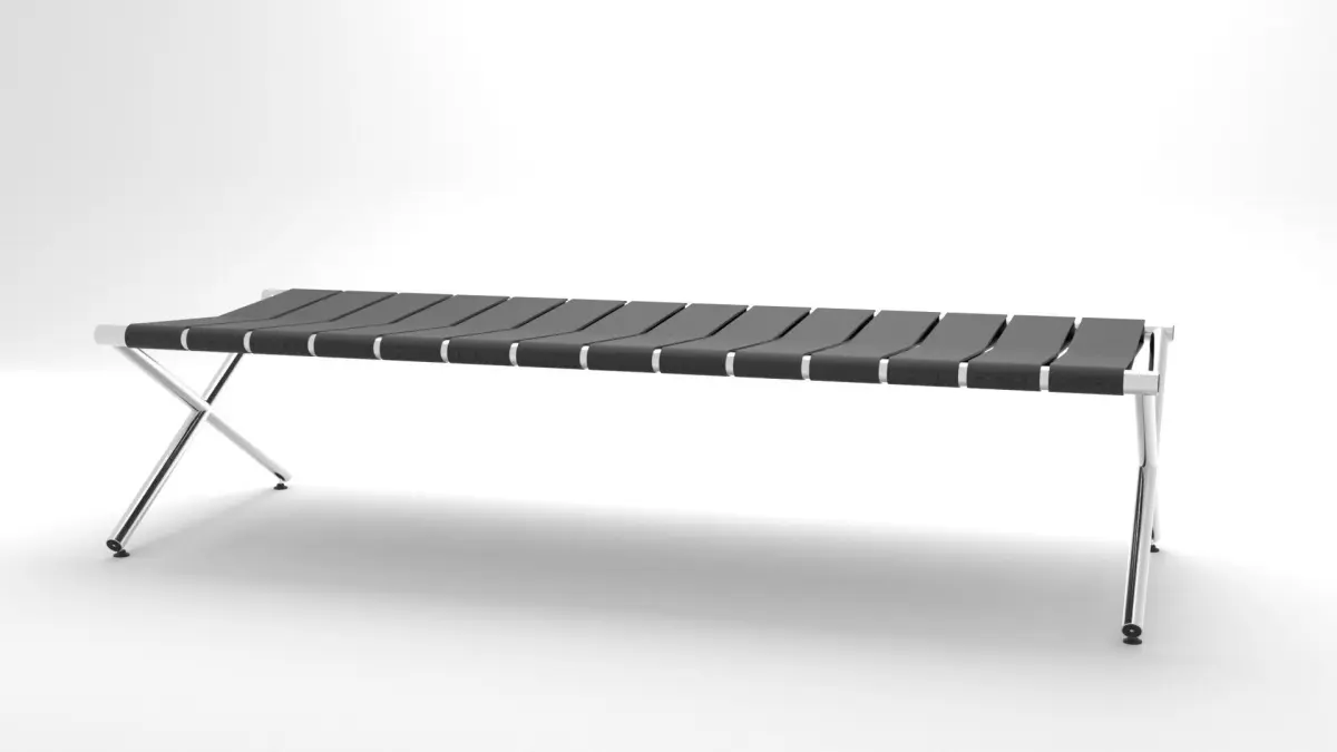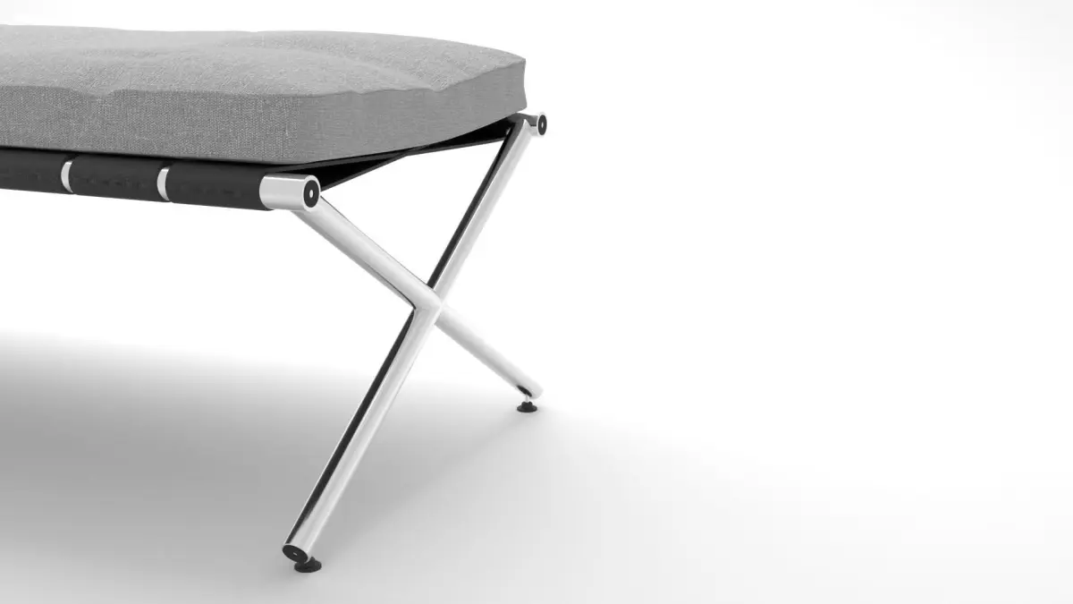 This is a luxury bench inspired by Minotti, made out of leather straps on a chrome metalic frame with a soft pillow on the top. This is an imitation of the real thing. Good for many modern interior designs