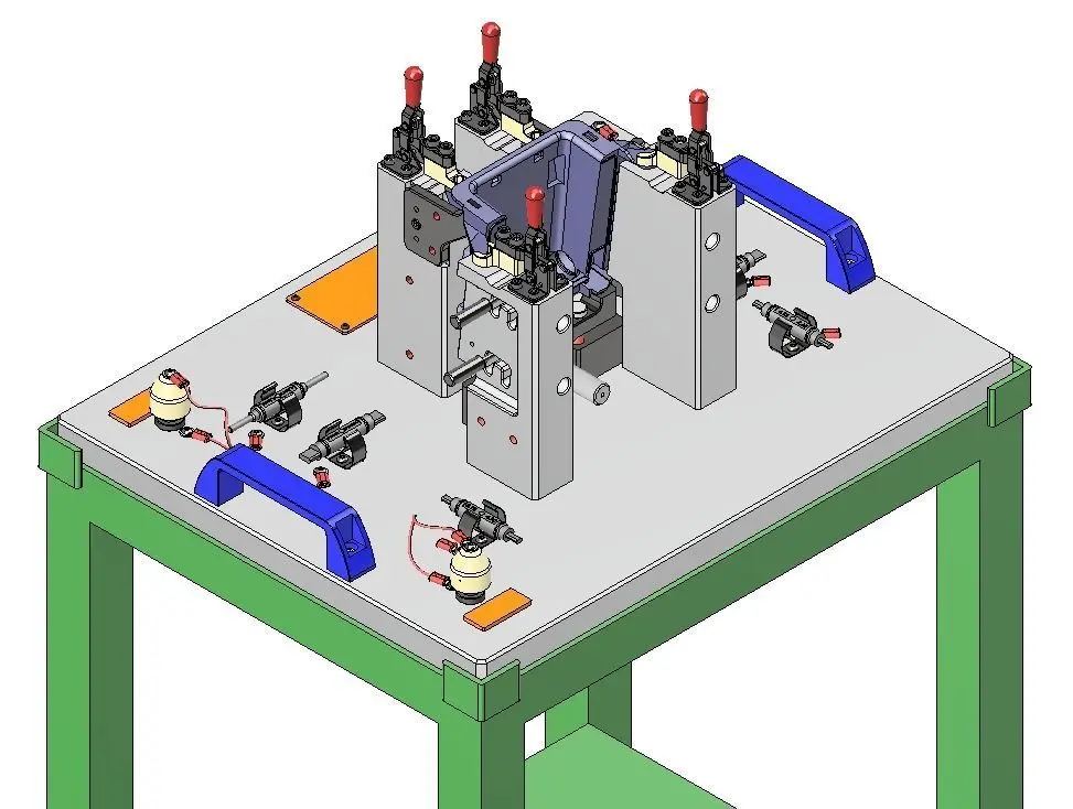 Very detailed 3d model of a checking fixture.The measured part is an interior part of a car. The format is step and stl.