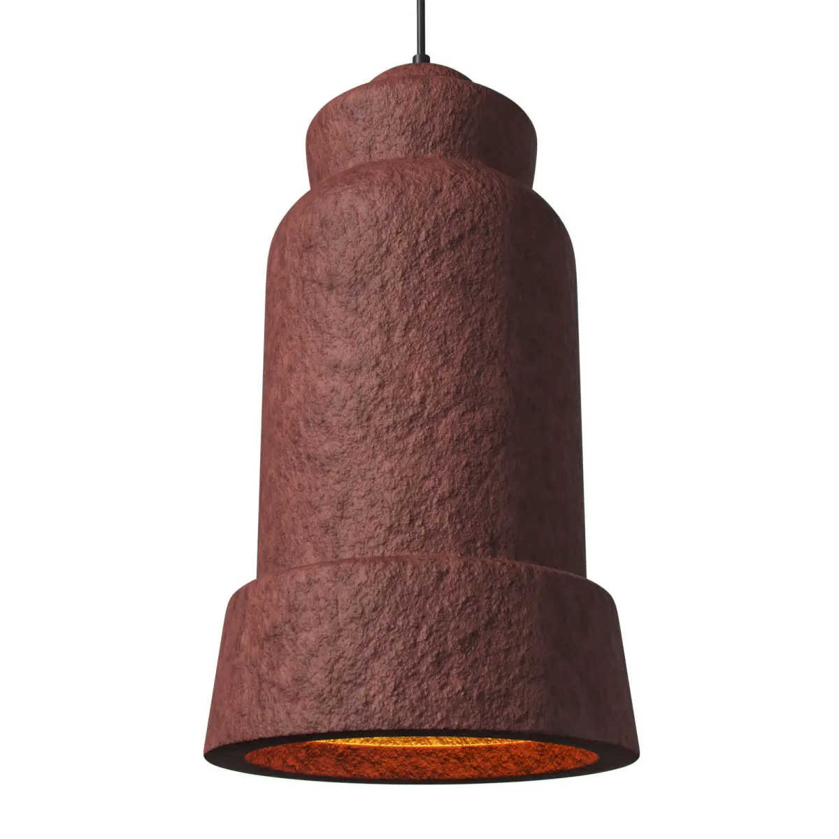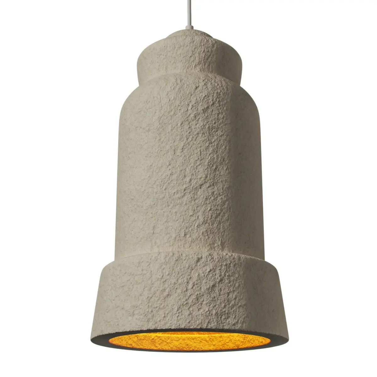 Checkmate Rook Pendant by Danny Fang for HiveWith their warm candle-like light, these chess pieces are sure to give a royal ambient interior. Hand-laid salago fiber offers a beautiful contrast to the smooth gold-leafed shade interior.