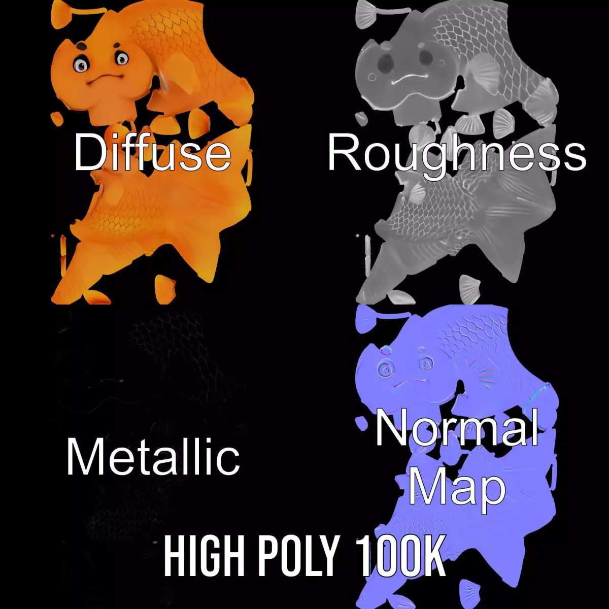 The Cheerful Orange Goldfish model pack features a vibrant, cartoon-style goldfish, perfect for aquatic-themed projects, animations, and educational content. Each model has 3 levels of detail: low-poly (1000 triangles for mobile), middle-poly (10,000 triangles for environment), and high-poly (100,000 triangles), which allows for the use of this model in production rendering (such as 3ds Max, Maya, Cinema4D, Blender, Vray/Corona/Cycles and all other), game engines (Unity and Unreal compatible), and interactive presentations, providing a choice of detail based on the LOD System principle. The model's textures are PBR, Diffuse, NormalMap, and reflection/roughness/metallic, which are suitable for any modern rendering engine. All models are accurately unwrapped and have no overlapping UV. It can be used in educational projects, whimsical animations, and child-friendly games. Please like and leave a comment for the model if you liked it. All textures are 4096*4096 in size.