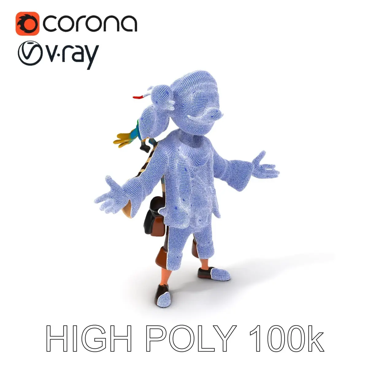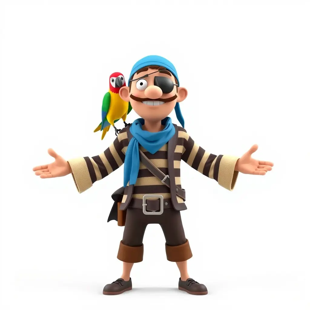 Home Catalog Cheerful Pirate with Parrot D Model Rigged and Animated Low-poly 3D model