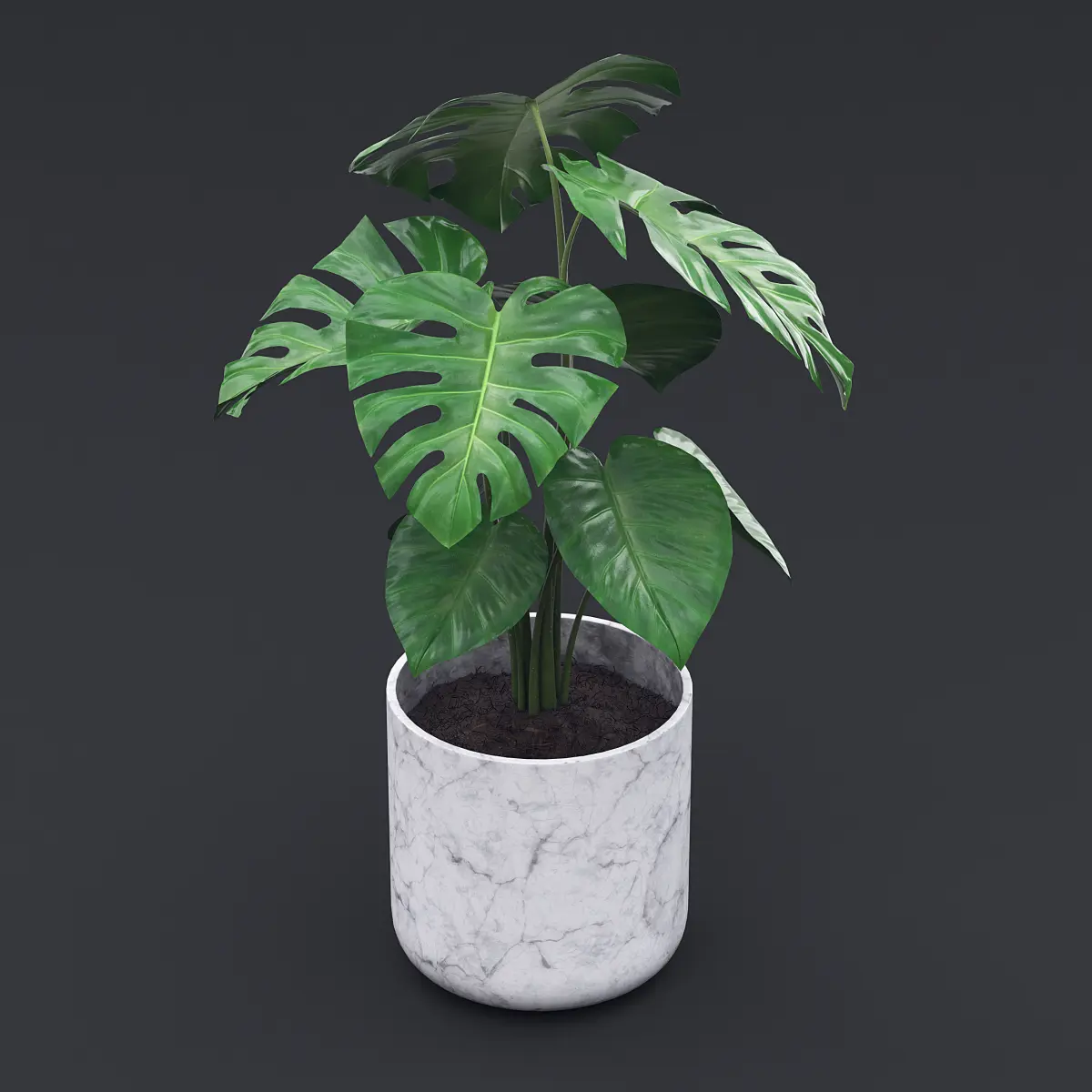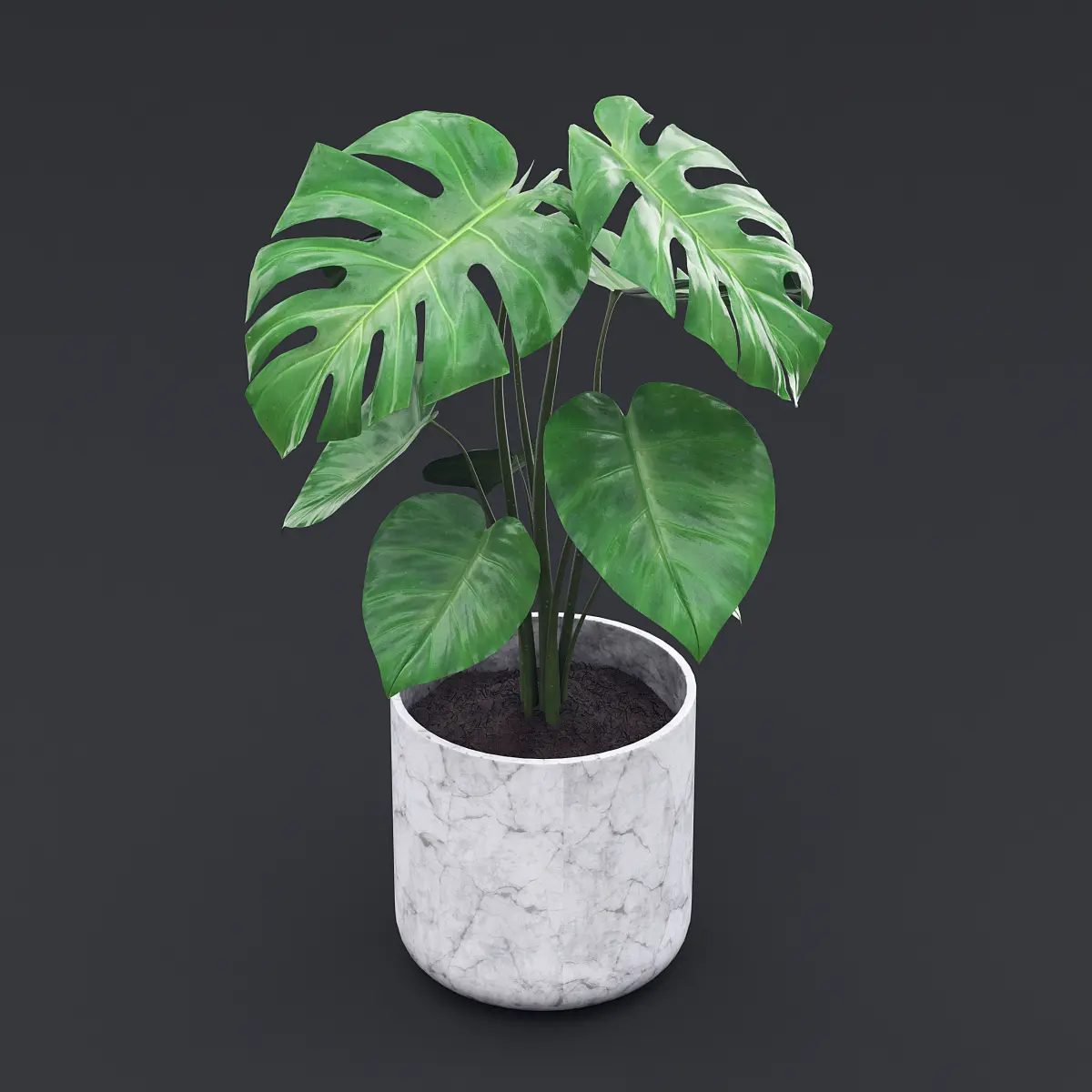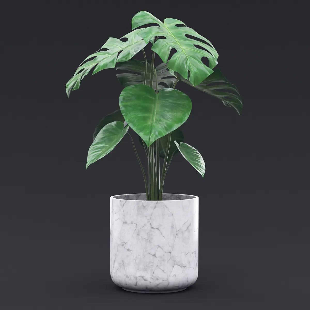 Cheese Plant - Monstera Deliciosa in a white marble pot.