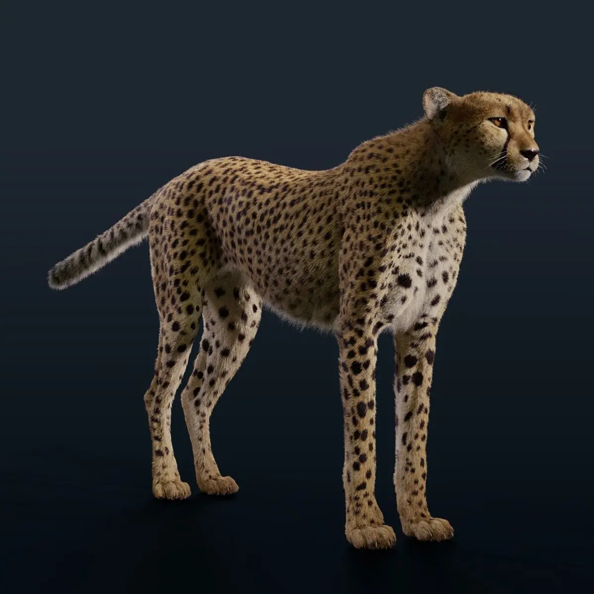 This is a realistic cheetah model with multiple 4K maps, fur, made with Blender and rendered by Cycles renderer at real-world scale. It consists of 8 objects.