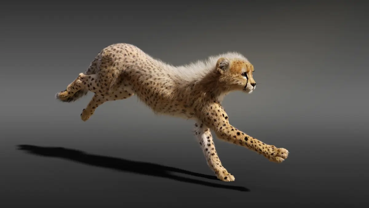 This is a high-quality young cheetah model with complete texture and fur, multiple 4K maps in the UDIM format, made with Blender and Cycles renderer. The head map is made separately to improve realism. ID map and Matte map are made to control the color of hair accurately. And the running, trotting and walking animations are available. It consists of 8 objects: Body, 2 pupils, 2 sclerae, 2 lacrimal caruncles, teeth, tongue, mouth, and paws.
