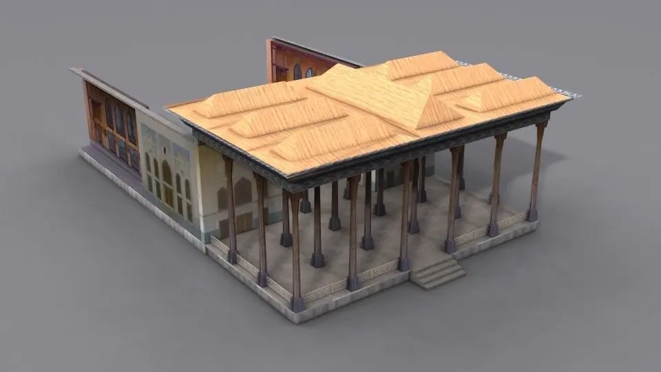 Chehel Sotoun is a Persian pavilion in the middle of a park at the far end of a long pool, in Isfahan, Iran, built by Shah Abbas II to be used for his entertainment and receptions