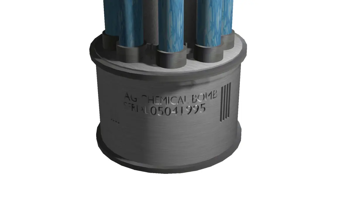 This is a chemical bomb with a built in cooling system i made out of my imagination . It should not represent a real one. Maybe usable for shootergames, mods for them or you rednders.