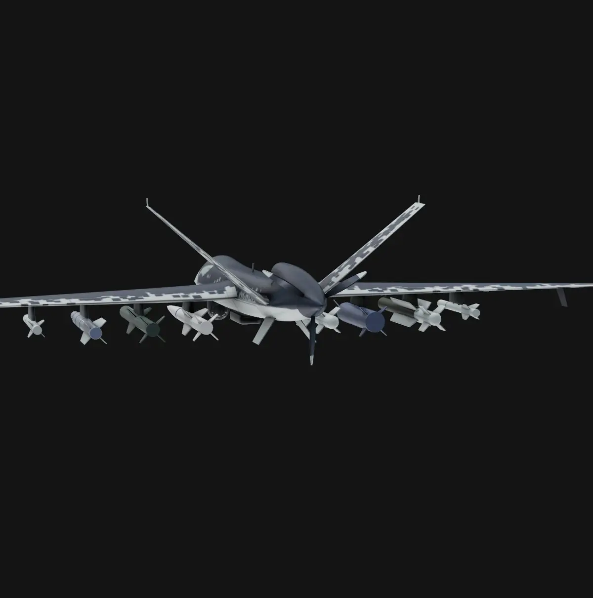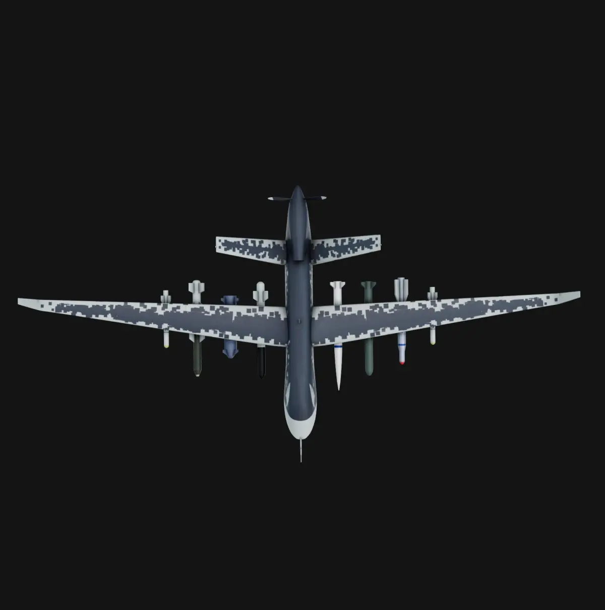 This low-poly 3D model of the Chengdu Wing Loong-II UAV, created in Blender, captures the aircraft's sleek design and key features such as the V-tail and underwing pylons. Optimized for real-time applications, it balances visual detail and performance, making it ideal for simulations and games