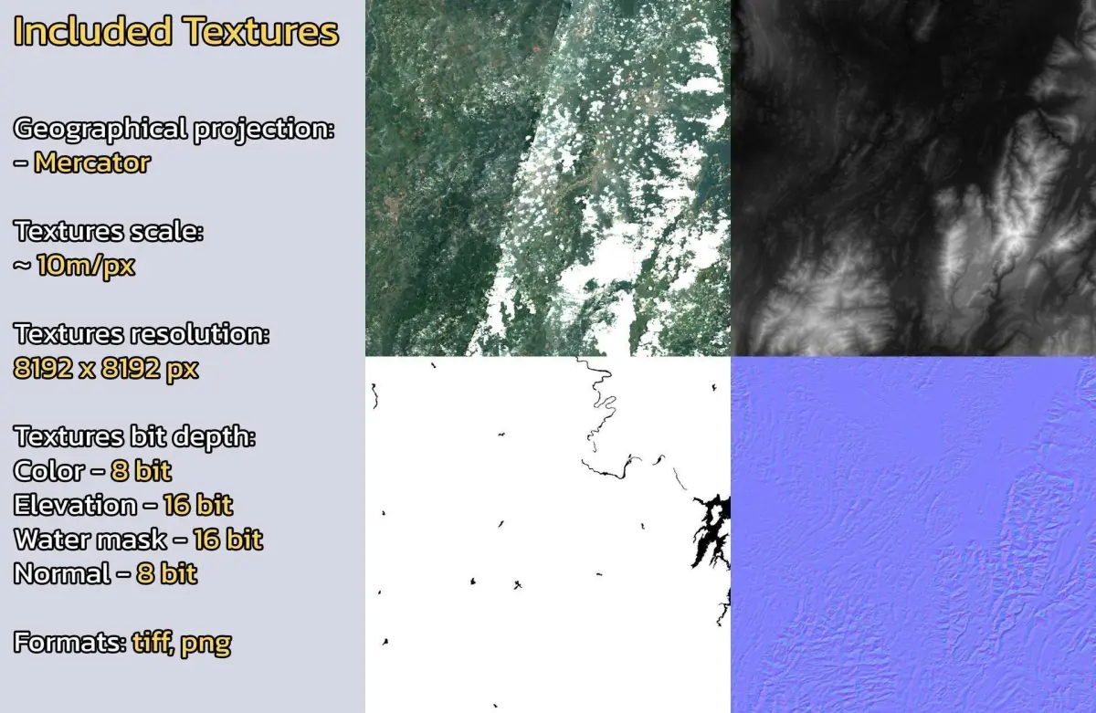 - Textures resolution: ~10m/px
