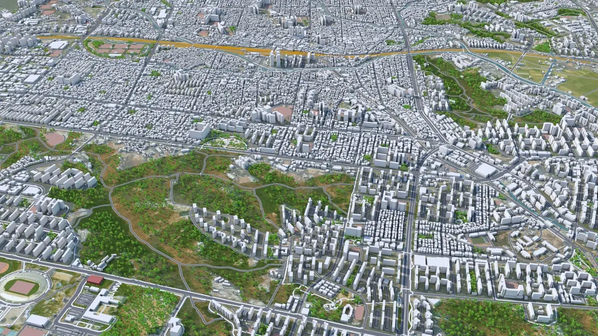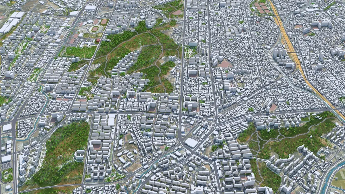 Accurate 3D city model and its surrounding area based on GIS data Year 2022