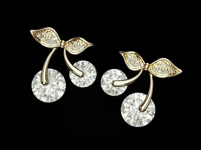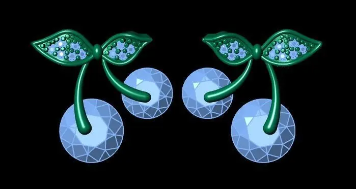 This pair of earrings is made of gold with amazing design. Above each earring there are two delicate leaves on which beautiful precious stones are arranged. There are two beautiful and delicate branches at the bottom of each earring, which are similar to cherry branches. At the end of each branch, there are two round stones that look like bright and beautiful cherry seeds. In this pair of earrings, the bottom stones are attached to the branches as pins. This method of attaching the stones to the branches ensures that they stay firmly and securely in place and allows for quick and easy access to replace or change the stones. This method also helps the beauty and strength of the jewelry and creates a beautiful look that fits the overall design of the earrings. With the beautiful combination of gold, beautiful gemstones, and the attractive design of cherry branches, this pair of earrings creates a wonderful and attractive work of art that can be a great choice for personal use or gifting to loved ones.