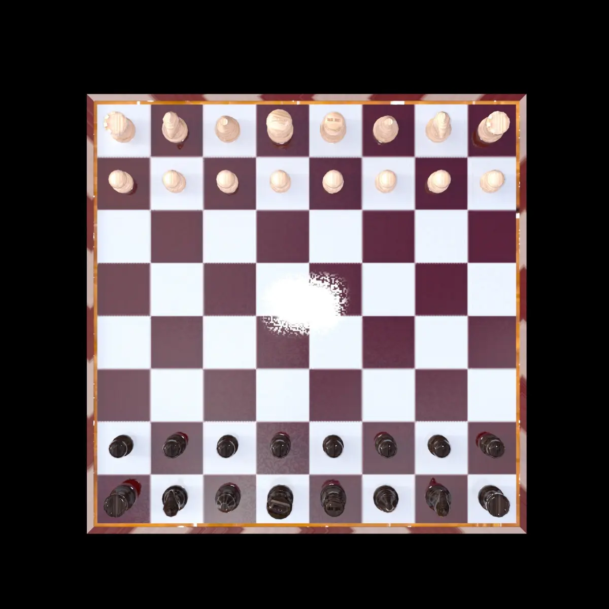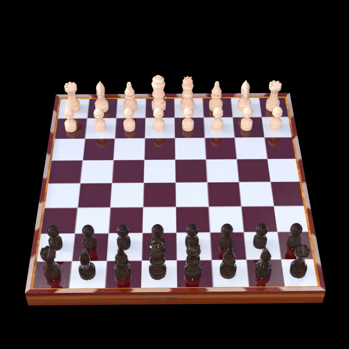 Complete chess board set with black/dark and white/light pieces.
