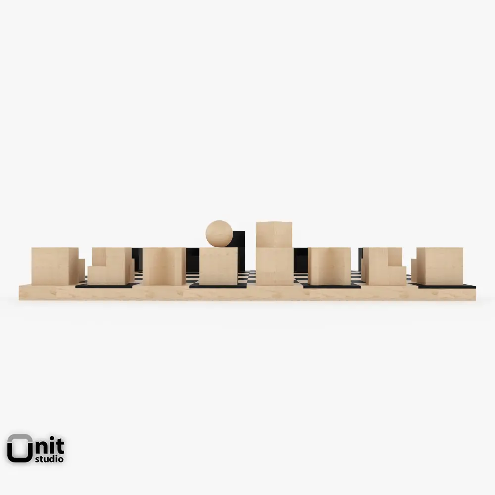 This game of chess with clean lines is typical of timeless Bauhaus style. Josef Hartwig's chessmen, designed in 1923, have characteristically reduced forms which, in contrast to commonly used figures, are symbols based purely on the function and form of the manoeuvre of each piece. Cubes, cylinders and balls lead you move by move to checkmate.