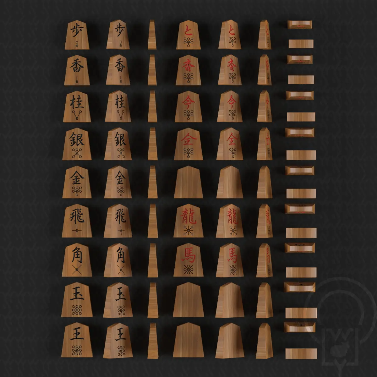 27 x 22.5 x 7.75 Pawn 歩兵 fuhyō - foot soldier • Promoted pawn (tokin) と金 tokin reaches gold