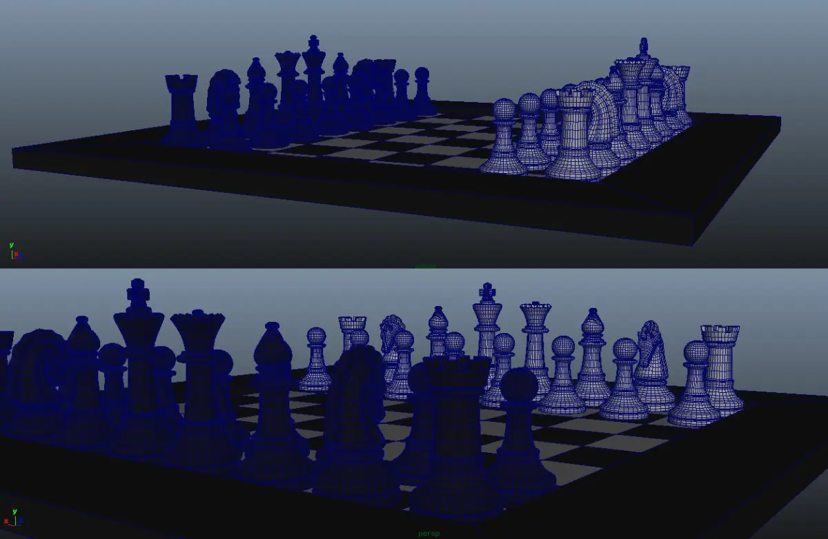 It's a high poly chess set model. It is made in Maya. ASCII, FBX and obj format included. Also a light rig is included in the Maya scene.