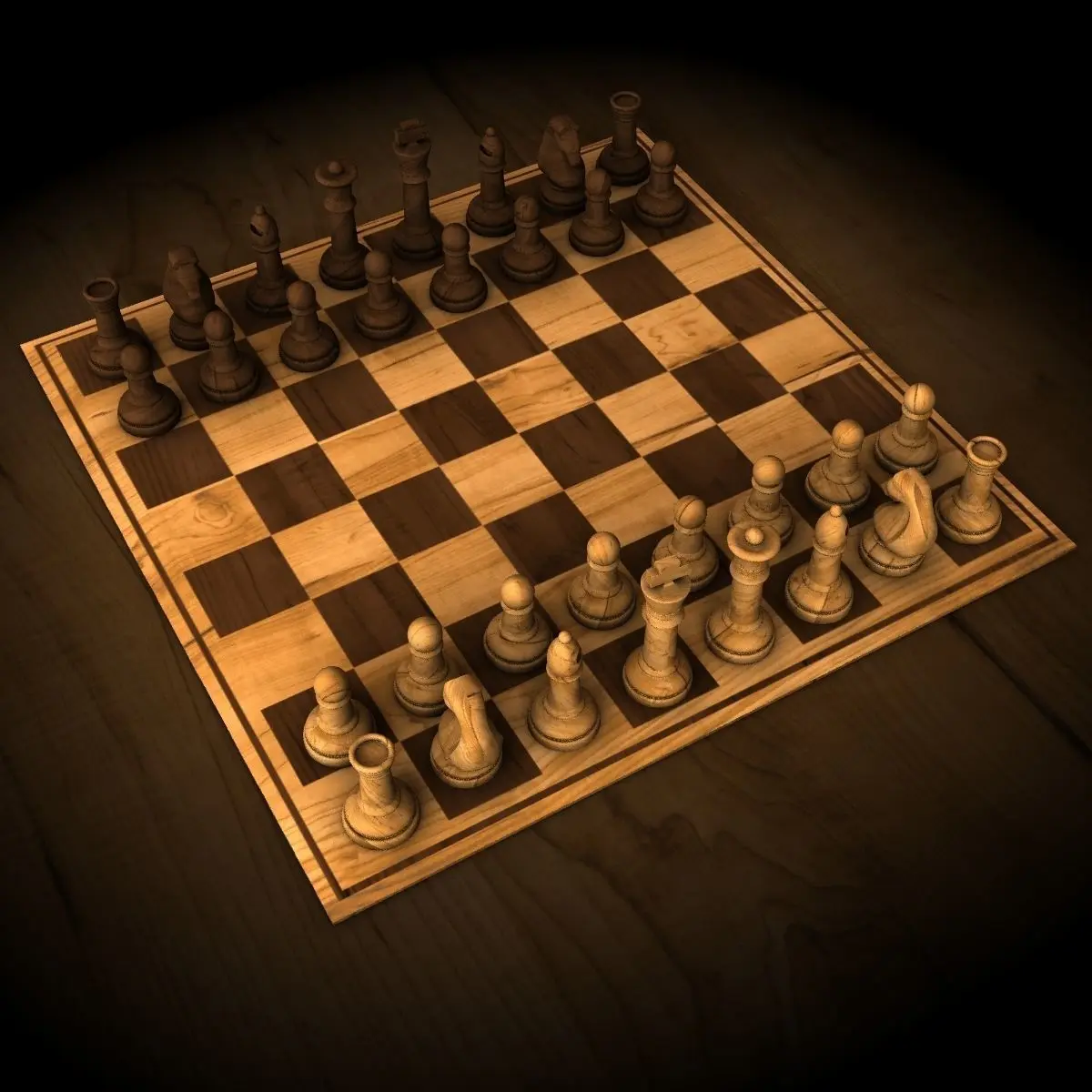 FILES:Wooden_Chess_Set.ma (Materials and Lighting)Wooden_Chess_Set_OBJ.obj (Model only)Wooden_Chess_Set_FBX.fbx (Model only)