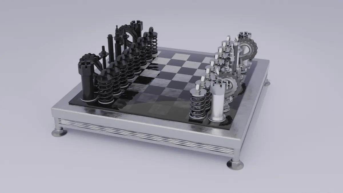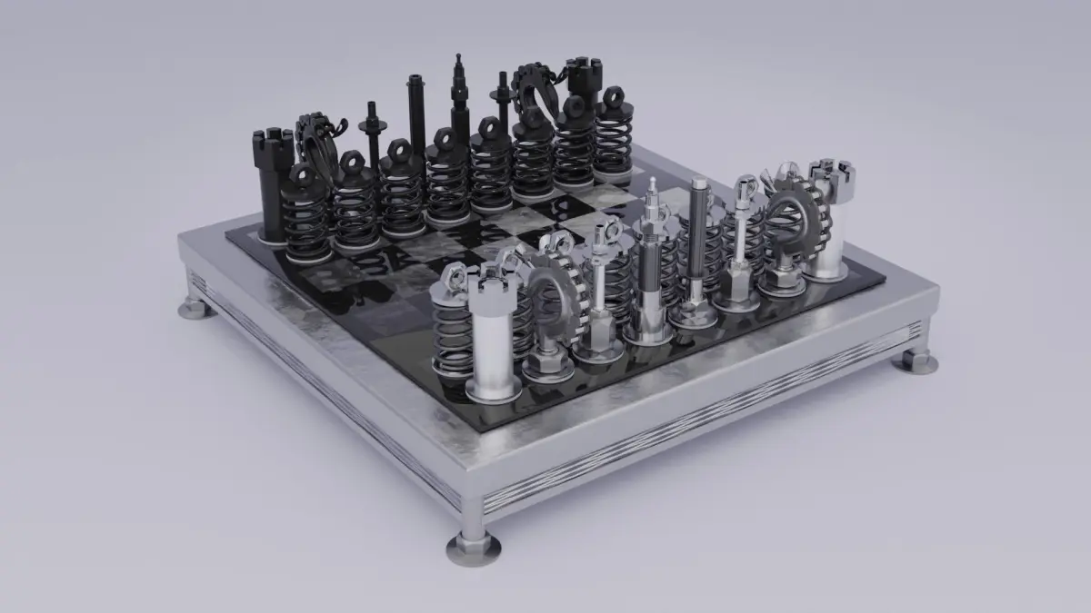 This is 3D model of the chess figure style “metal art” .