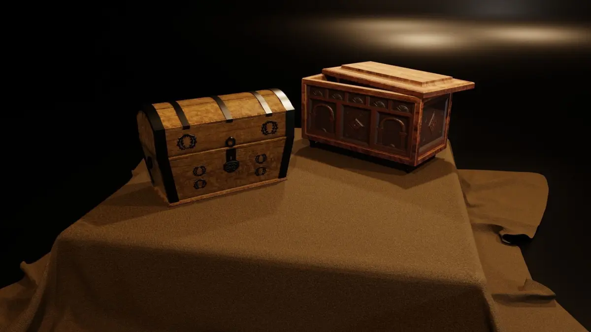 10 chests and coffers with different levels of detail, all lowpoly (596 - 5604 polygons).