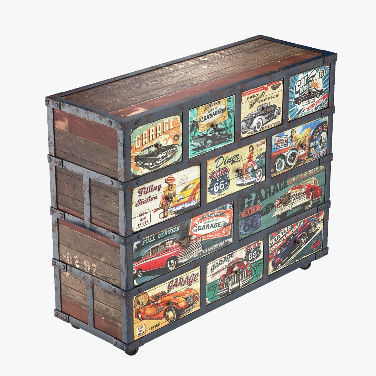 Name: Chest of drawers retro carArticle 10.094.H.20.S20Release: 2013Preview: YesUnits of measurement: millimetersSize: 1190 x 400 x 940 mmPolicies: 100 264XForm: YesBox: YesModel parts: 41Render: V-Ray, CoronaFormats: 3Ds Max 2013, OBJ, FBX