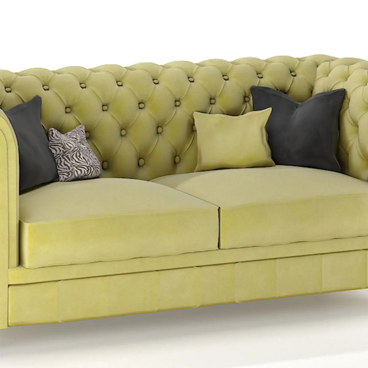 Chester velvet sofa in two colors, black and yellow. Comes with a decorative velvet pillow.This model has a sofa with two materials, black and yellow + all the decorations, like the original preview.All textures are attached, the mapping is done.