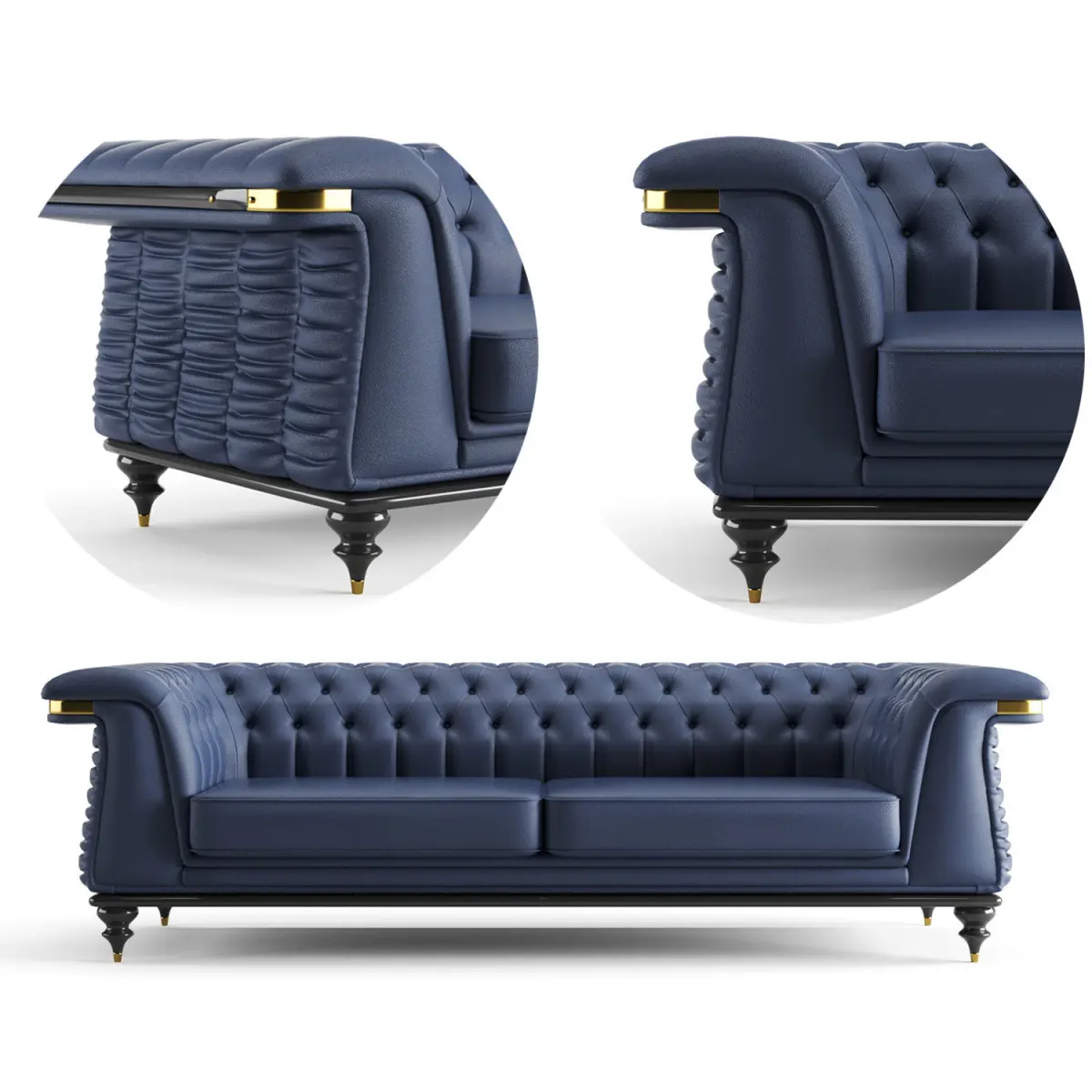 This handsome tufted sofa features solid and engineered hardwoods, covered with high-quality leather, rolled arms, and deep tufted button design that provides that luxury finish you crave. Also, this couch offers plenty of space for entertaining friends and family.