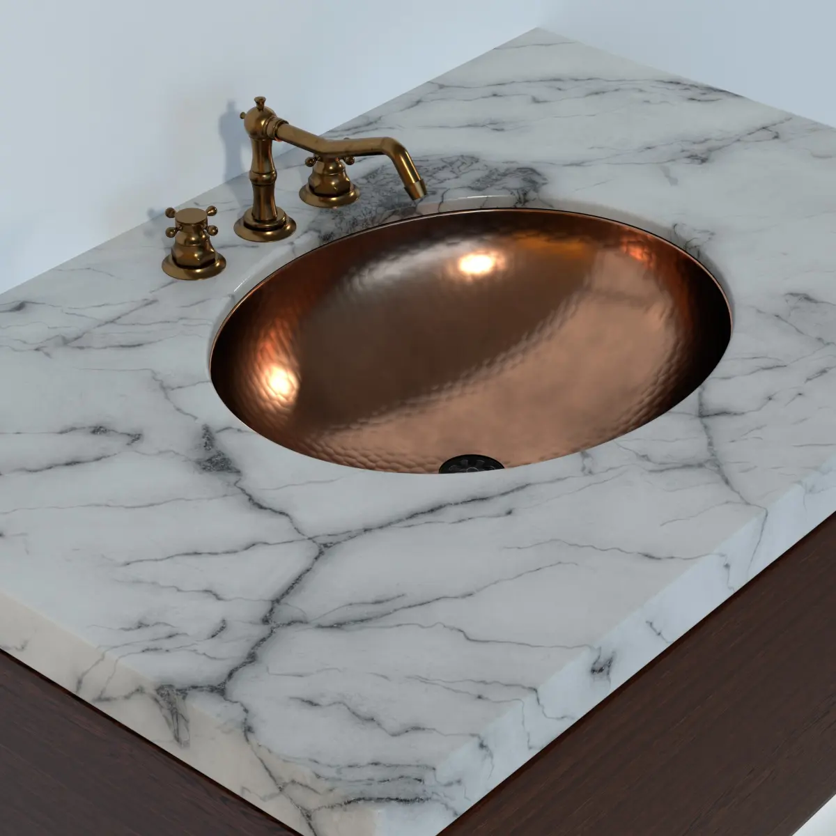 This package contains “Chester Traditional Dual Handle faucet with Copper Hand Hammered Oval Undermount Sink”