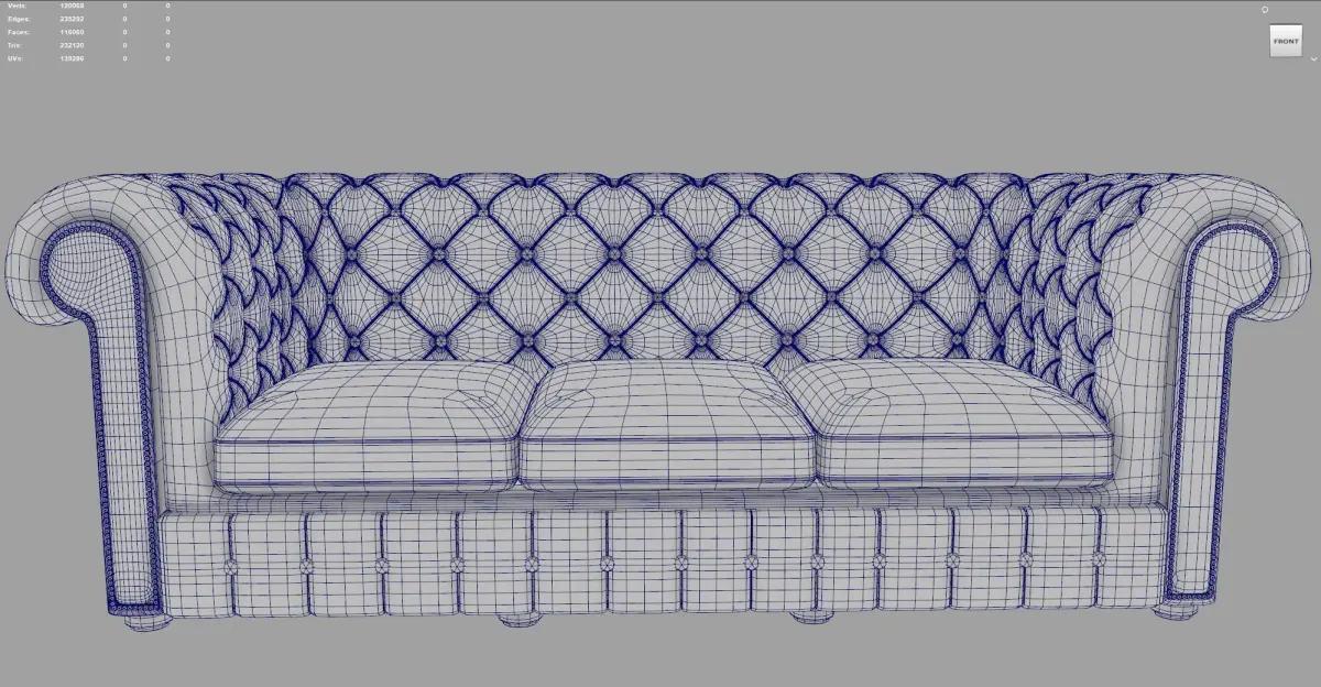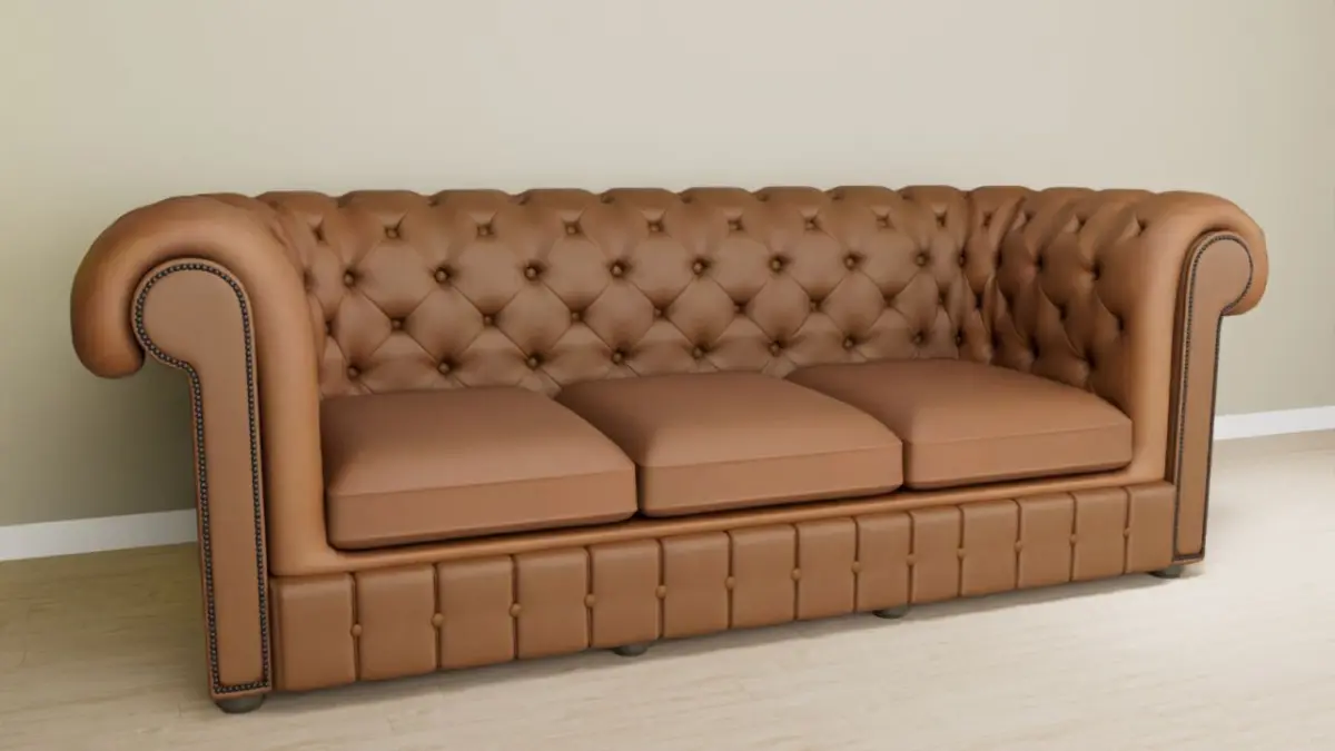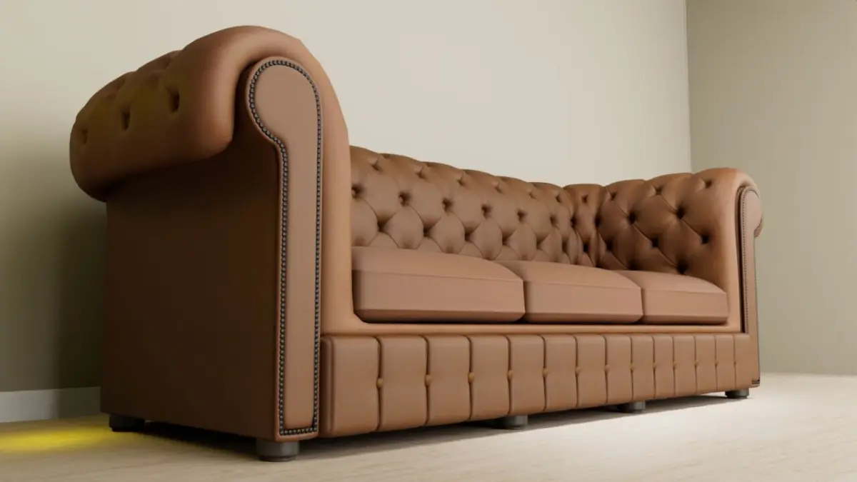 This is a high-quality 3D model of a Chesterfield-style leather sofa, crafted with precision and attention to traditional upholstery detailing. Ideal for architectural visualization, interior design, cinematic environments, or luxury game scenes, this asset features an iconic tufted pattern with buttons, rounded arms, and deep seating cushions.