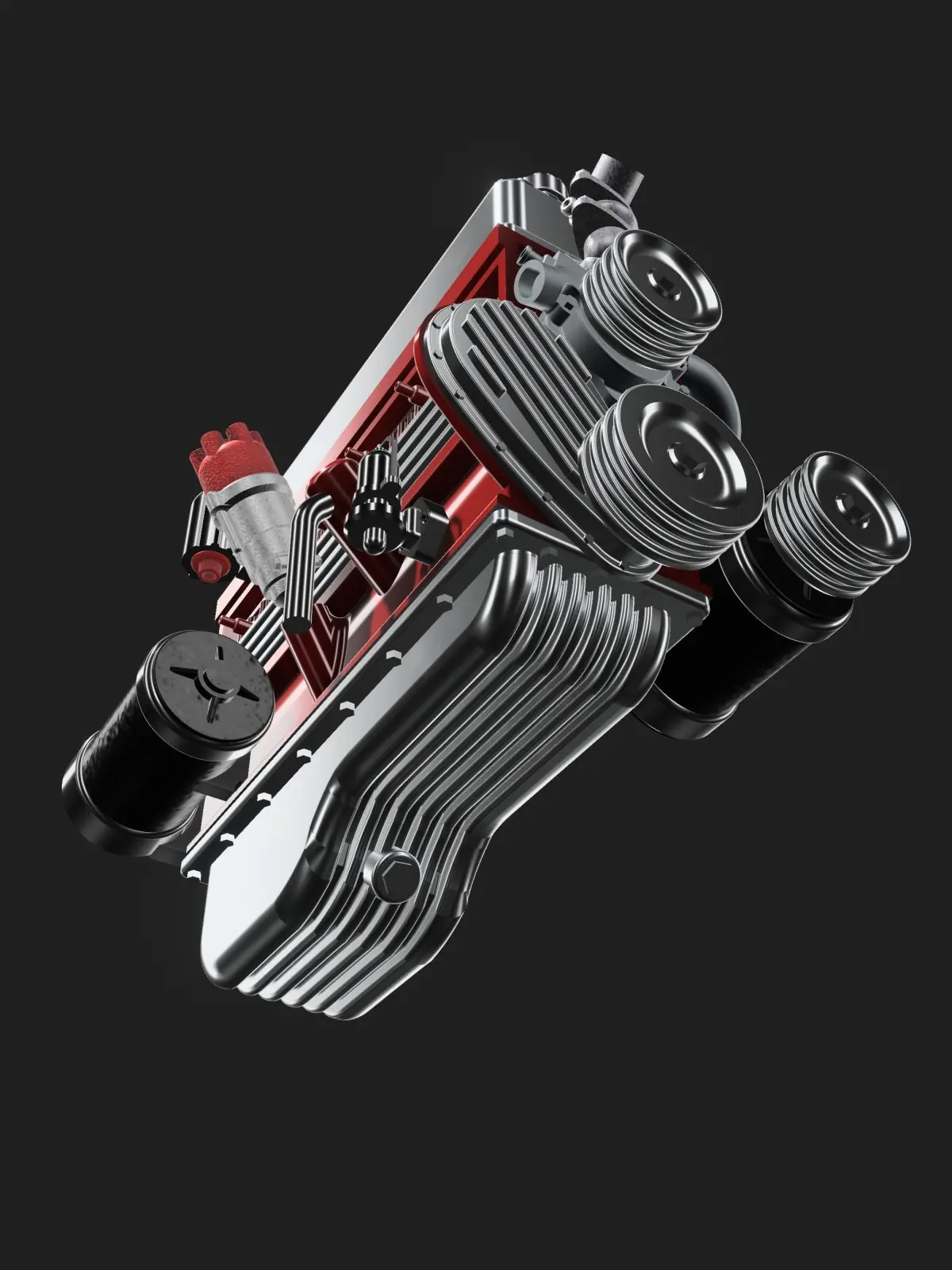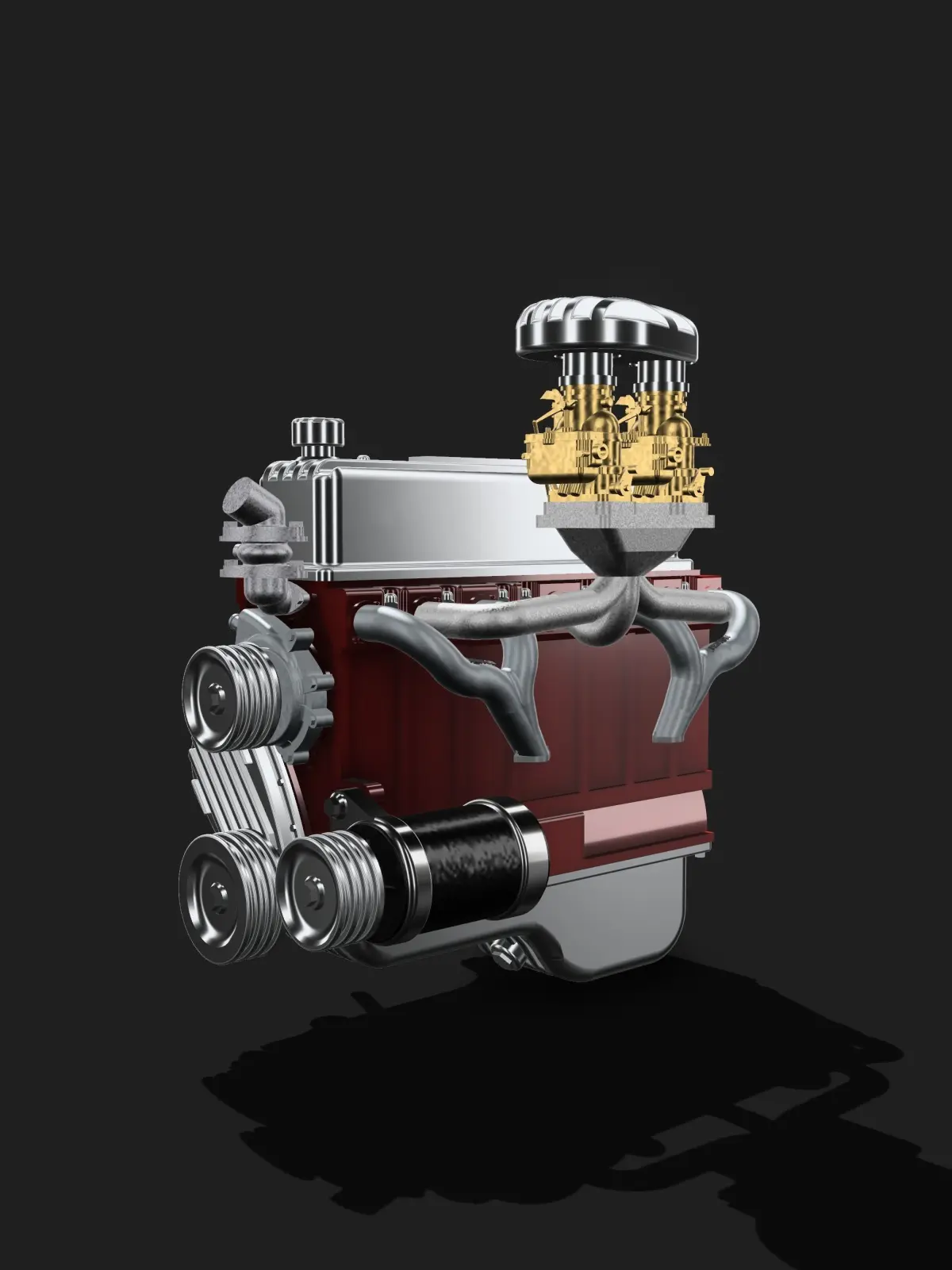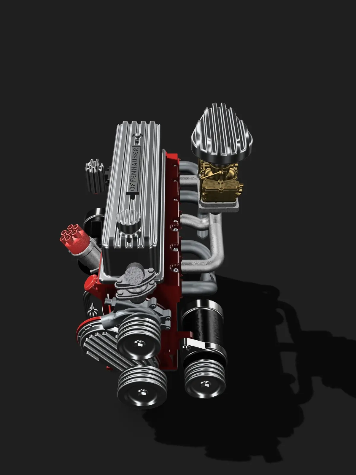 Designed from scratch is a vintage 1940s/1950s Chev 235 engine, with period correct vintage accessories in a Lowrider/Bomb/Kustom style, high in detail, ideal for scale modeling (currently in 1/24 and 1/25 scale).