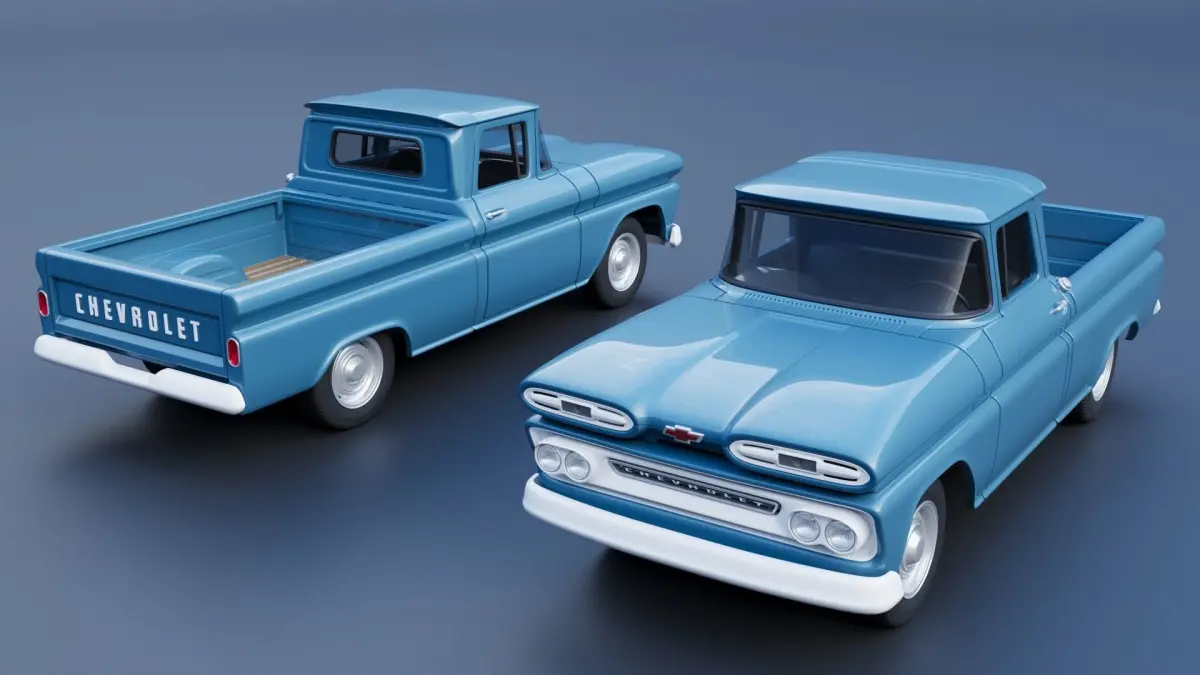The model includes •Cab •Cab without hood •Hood •Grille •Cab divided into 3 parts •Box divided into 4 parts •Bumpers •Interior •Chassis •Engine •Wheels •Tires •Windows and glass for headlights and taillights