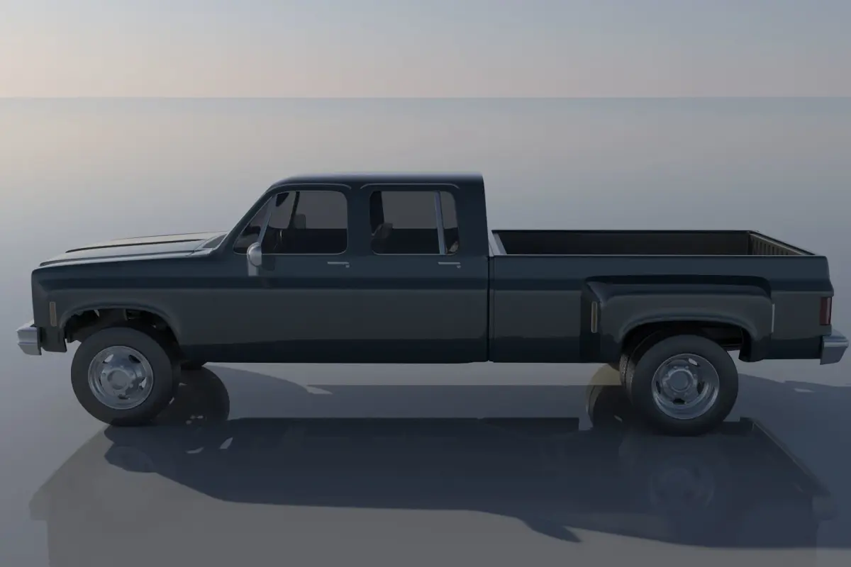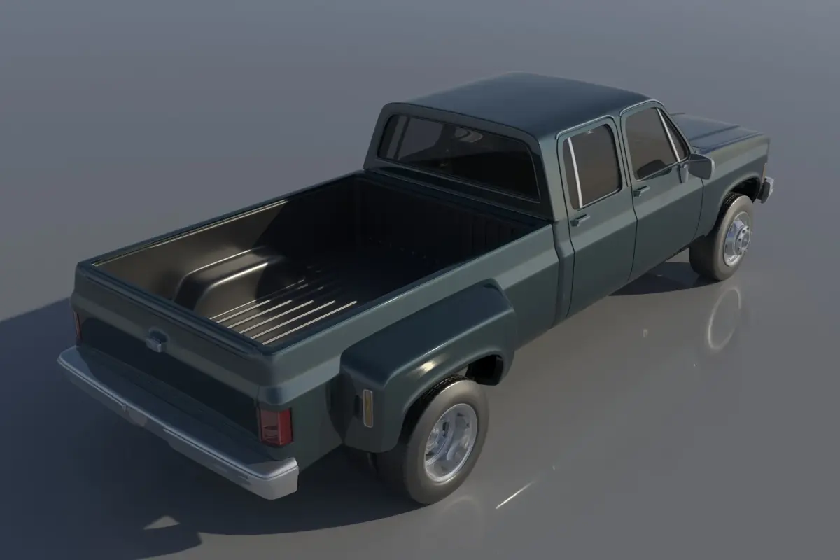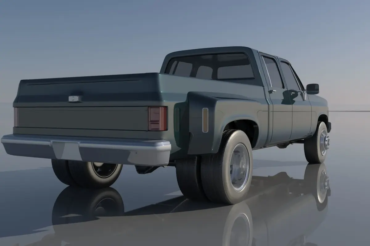 The model includes •Cab •Grille •Cab divided into 3 parts •Dump bed divided into 6 parts •Bumpers •Interior •Chassis •Wheels •Tires •Windows and glass for headlights and taillights