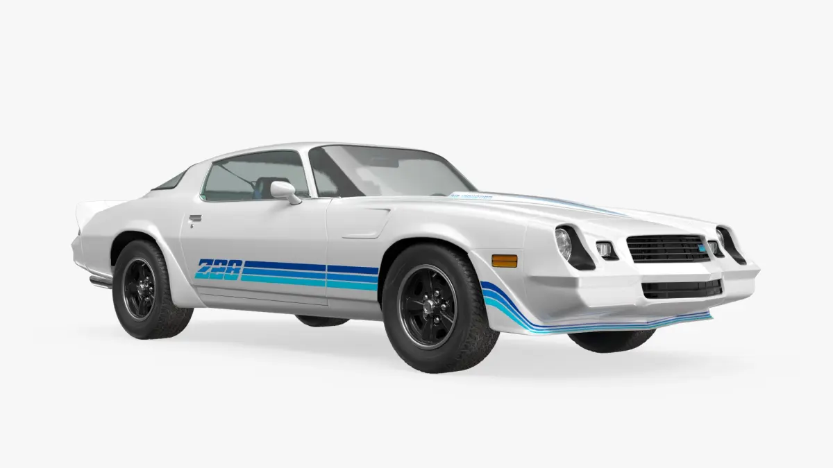 The Chevrolet Camaro Z28 Retro Sports Car White is a basic retro-themed representation of the iconic Z28, finished in white. It offers a simplified view of the car’s sporty shape, emphasizing its classic influence and traditional performance silhouette.