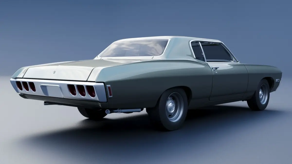 The model includes •Body •Body without hood •Hood •Body divided into 4 parts •Grille •Engine •Interior •Chassis •Wheels •Tires •Windows and glass for headlights and taillights