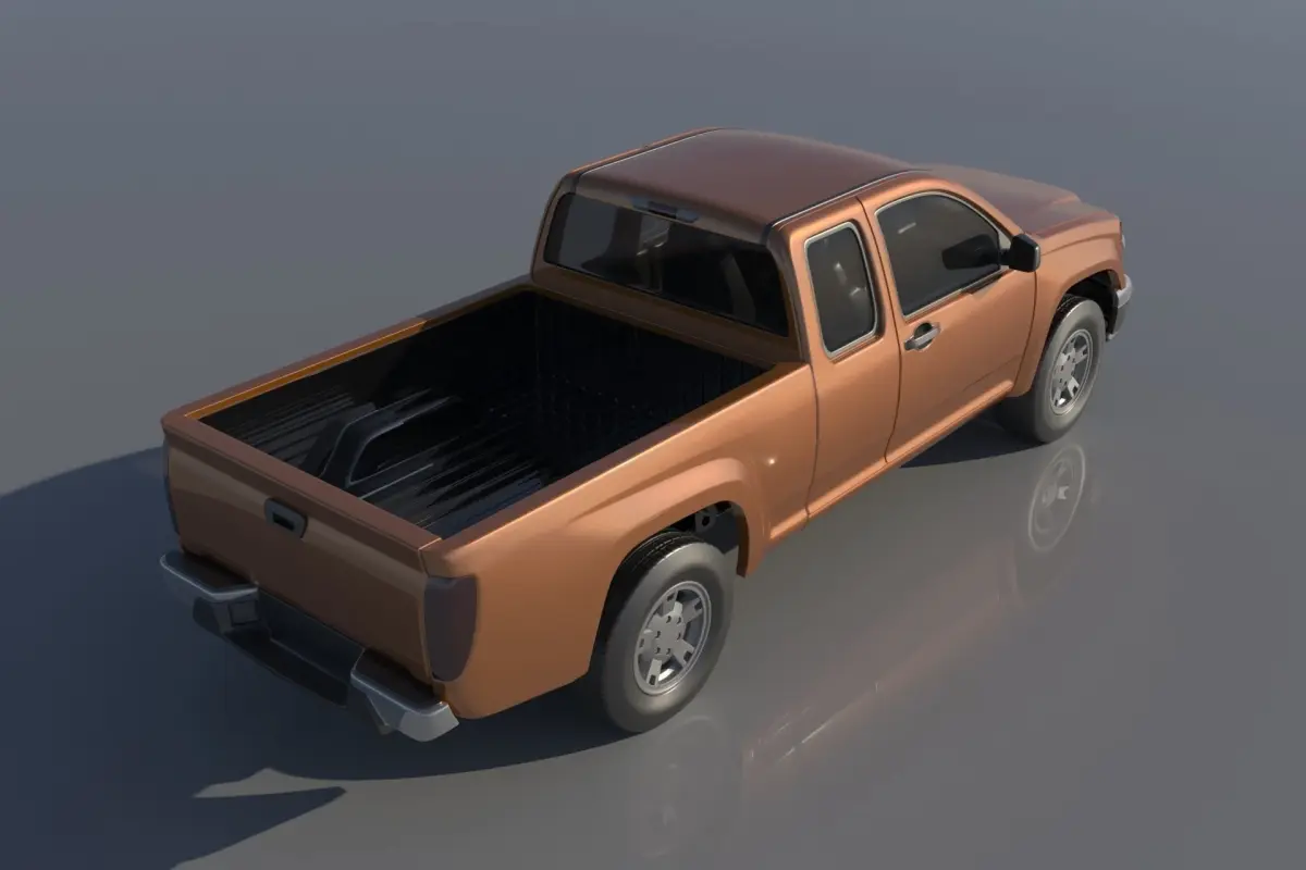 The model includes •Cab •Tonneau •Cab divided into 3 parts •Tonneau divided into 2 parts •Bumpers •Interior •Chassis •Wheels •Tires •Windows and glass for headlights and taillights
