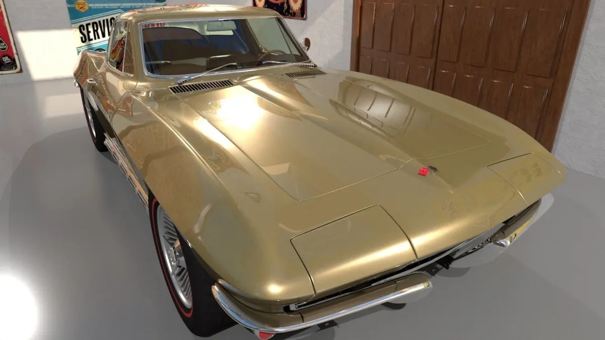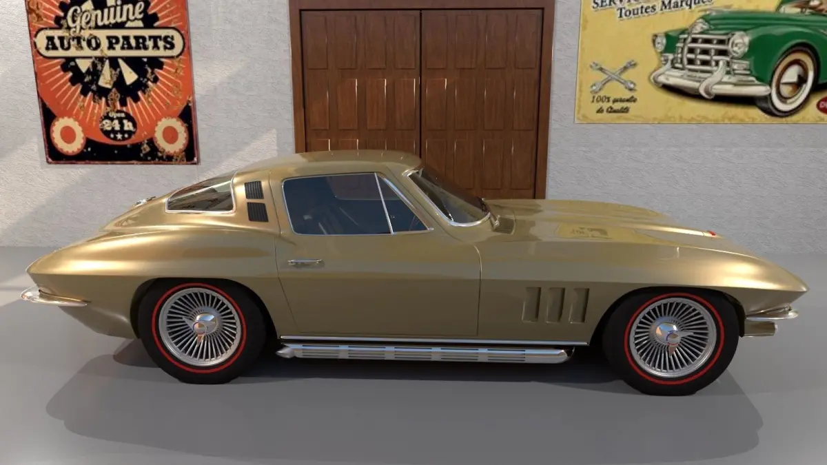 Quad headlamps were retained but newly hidden – the first American car so equipped since the 1942 DeSoto. The lamps were mounted in rotating housings that blended with the sharp-edged front end when closed. Hidden headlamps would be a feature of the Corvette until the C6 model debuted in 2005. Coupe doors were cut into the roof, which made entry/exit easier in such a low-slung closed car. Faux vents were located in the hood and on the coupe's rear pillars; functional ones had been intended but were cancelled due to cost considerations. (https://en.wikipedia.org/wiki/Chevrolet_Corvette_(C2))