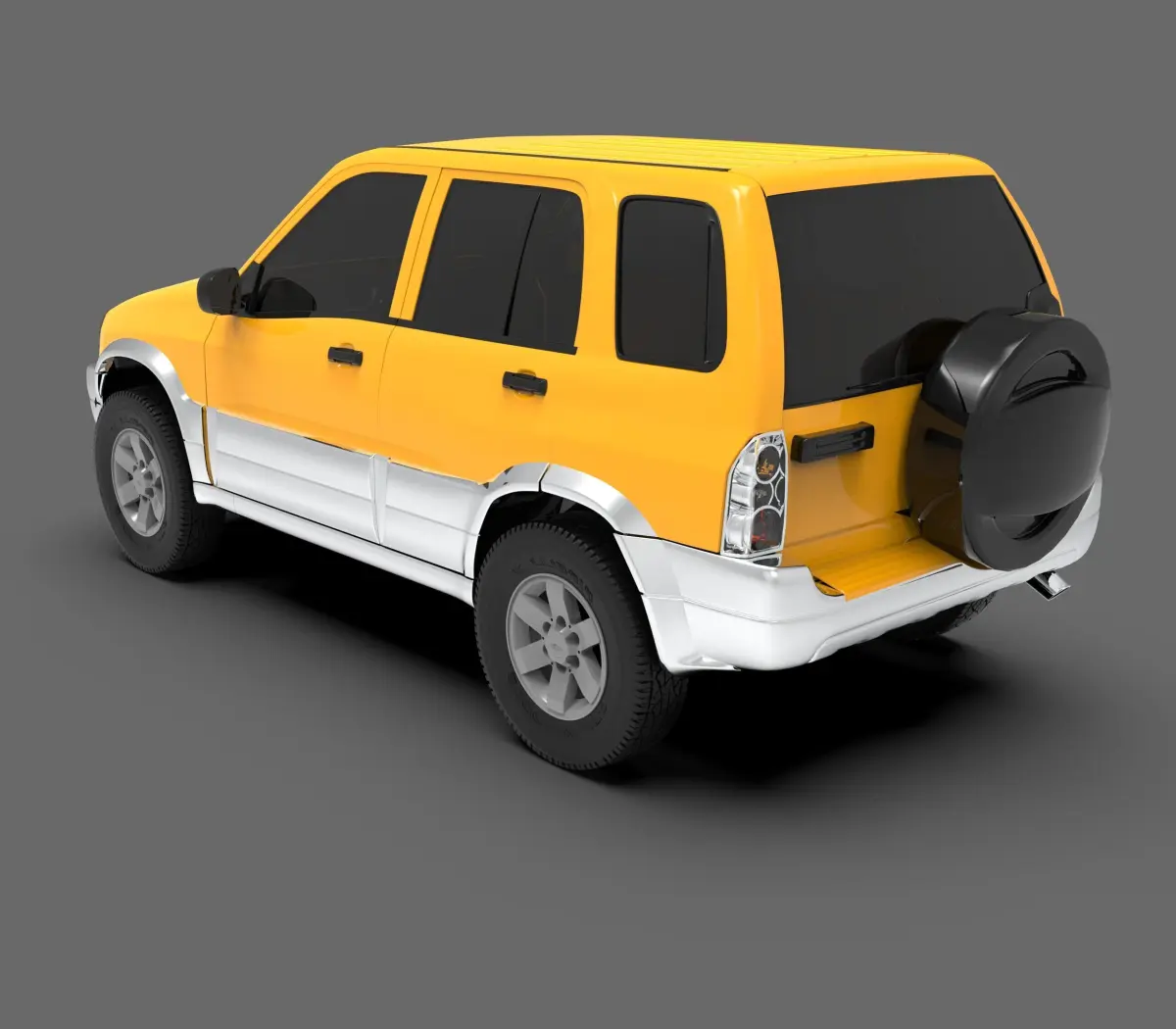 High-quality 3D model of the Chevrolet Grand Vitara 2007, a compact SUV known for its reliability and off-road capability. This model accurately represents the exterior design, featuring its rugged body lines, signature front grille, and well-proportioned dimensions. The model does not include an interior, making it optimized for exterior renders, animations, VR/AR applications, and automotive visualizations where interior details are not required.