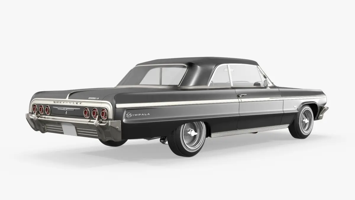 Chevrolet Impala 1964 Hydraulic Lowrider Vehicle Black is a three-dimensional model of Chevrolet Impala Lowrider 1964, a classic American car widely recognized for its lowrider customization and cultural significance.